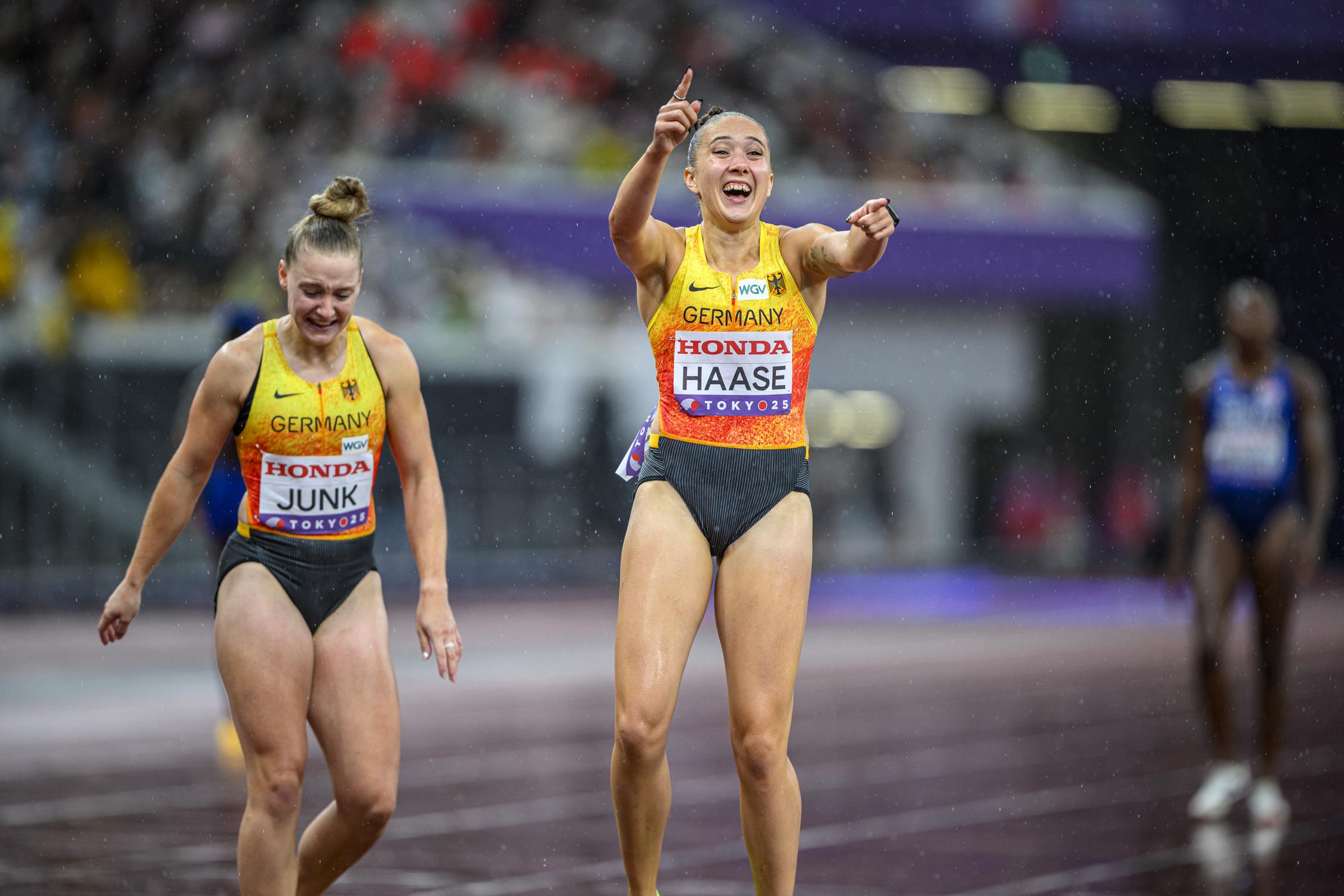 Die DLV-Staffel überzeugte im Vorlauf: Mit starker Vorstellung von Rebekka Haase (Sprintteam Wetzlar) und Sophia Junk* lief die Staffel 41,86 Sekunden und qualifizierte sich souverän für das Finale. Damit erzielten sie die drittbeste Zeit aller Vorläufe.