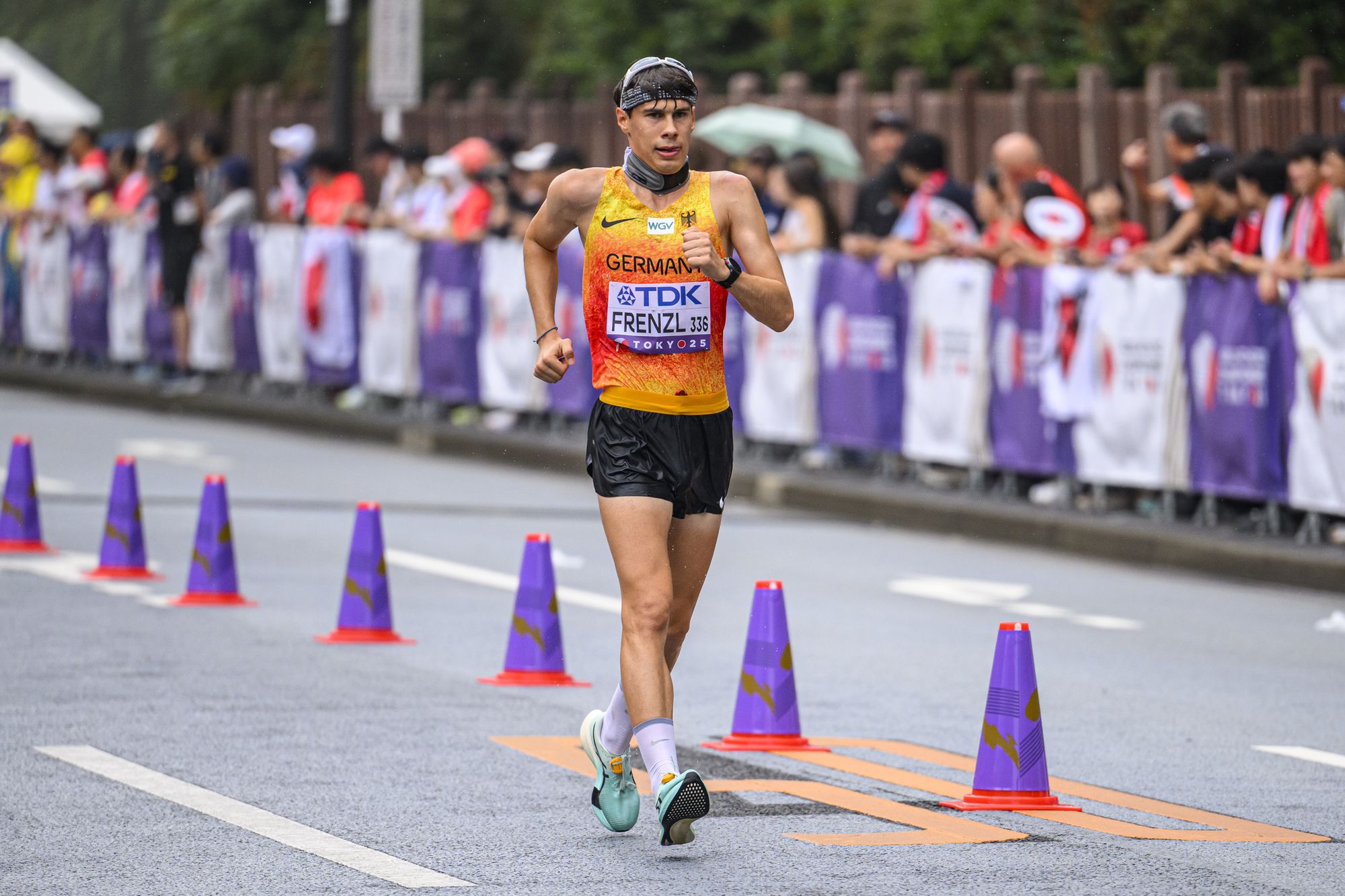Bereits am ersten WM-Tag (Samstag, 13.09.) ging es heiß her – im wahrsten Sinne: Beim 35 km Gehen um 7:30 Uhr morgens (Ortszeit) kämpfte Johannes Frenzl (Eintracht Frankfurt) bei schwül-heißen Bedingungen stark und belegte Platz 17 in 2:36:47 Std.