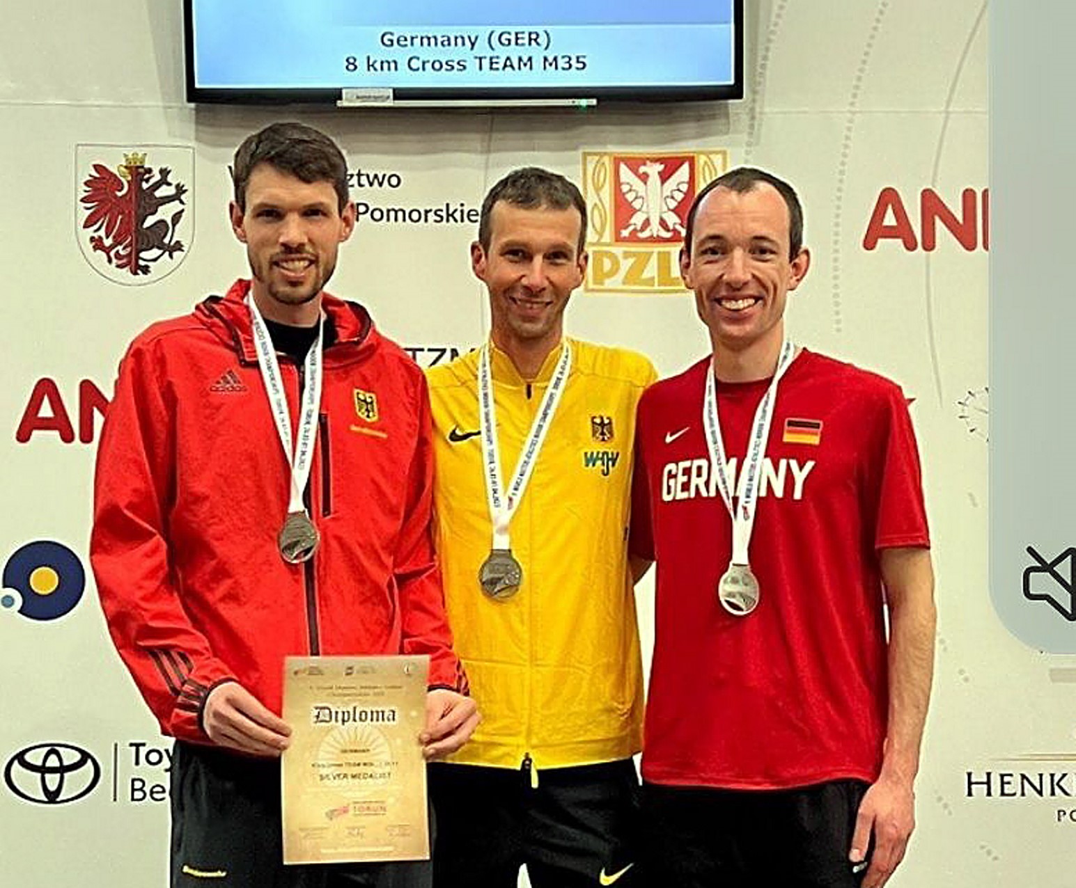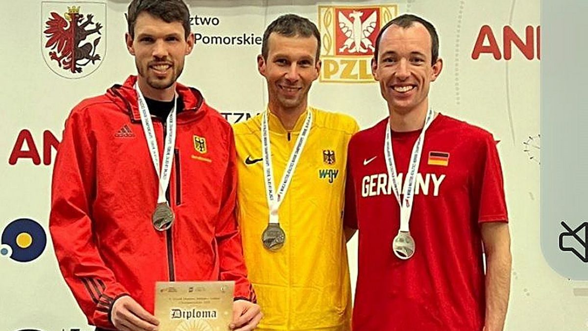 Torun - „Der Zwei-Tage-Tripp an die Weichsel hat sich gelohnt“. Dieses sagte Martin Herbold (TuSpo Borken) nach der Rückkehr von der Senioren-Hallen-Weltmeisterschaft der Leichtathleten in Torun/Polen. Nach einer 830-Kilometer-Anreise mit dem Pkw stand tags darauf bereits der im Rahmen dieser Titelkämpfe ausgetragene Crosslauf über acht Kilometer auf dem Programm. In 1:26:11 Stunden erkämpfte das deutsche Team mit Andreas Kuhlen (LC Braunschweig), Tobias Schulz (LC Eschenburg) und Martin Herbold mit lediglich 42 Sekunden Rückstand hinter Gastgeber Polen (1:25:29) den Silberrang und distanzierte Bronze-Gewinner Belgien (1:32:22) um mehr als sechs Minuten.