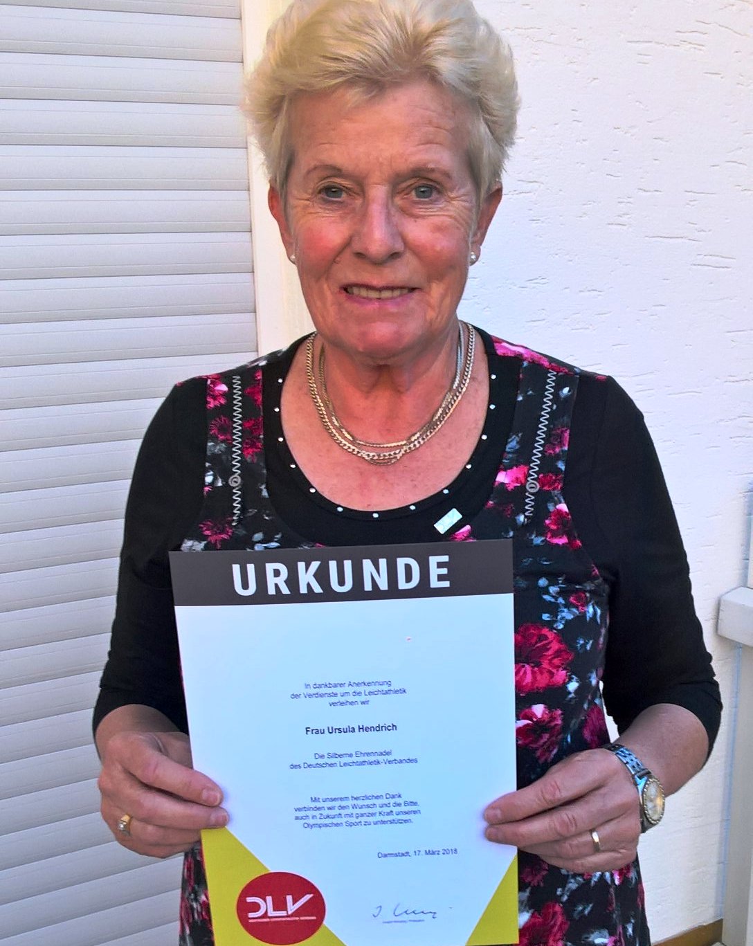 Der Deutsche Leichtathletik-Verband hat Ursula Hendrich (LG Kaufungen) für herausragende Verdienste in der Leichtathletik, insbesondere für qualifizierte Trainerarbeit und Förderung von Talenten, die silberne Ehrennadel verliehen.