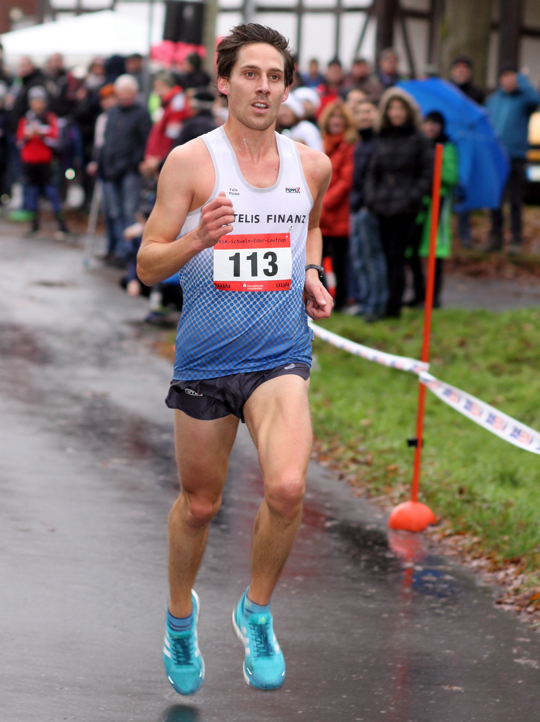 ZIEGENHAIN. Der Rekord im Langstrecken-Rennen über 8100 Meter beim Silvesterlauf des TuSpo Ziegenhain ist gefallen. In einem Sturmlauf verbesserte Felix Plinke (LG Regensburg) die 22 Jahre alte Höchstleistung von Ulrich Wolf um sieben Sekunden und wurde für diese Leistung von Organisator Bernd Bick mit einem Sonderpreis belohnt. Der Social-Media-Experte aus München weilte zum Silvesterbesuch bei seinem ebenfalls für die LG Regensburg startenden Mannschafts-Kameraden Florian Orth in der Schwalm und suchte einen sportlichen Jahreswechsel.