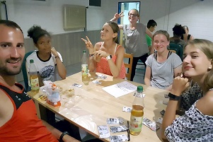 Nach dem verregneten Start genießen die Teilnehmer des Camp 2 nun die Sommerferien bei Leichtathletik und Sonnenschein. Die Teilnehmer vom Camp 1 schrieben bereits ihre Tagesberichte mit ihren Erlebnissen, nun folgen einige weitere Camp-Tage der älteren Teilnehmer: Tag 2 Camp2 – 28.07 von Estelle, Anastasia und Anna: Am Freitag hatten wir einen langen Trainingstag. Er begann mit dem Frühstück um 8.00 Uhr. Danach folgte die erste Trainingseinheit, die dem Sprint gewidmet war. Zum Aufwärmen haben wir ein Spiel gespielt, sich etwas gedehnt und einige Koordinationsübungen gemacht. Dann wurden so genannte Ins and outs gemacht, dabei sprintet man das erste Stück und im zweiten Stück bekam man eine Aufgabe, wobei man auf eine bestimmte Technik achten sollte. <ENDE/>Zuletzt teilte sich die Gruppe, die erste lief eine Sprintpyramide und in der zweiten wurden 200m gelaufen. Dann folgte das Mittagessen. Nach dem Essen hatte man Freizeit, die die Jugendlichen nutzten um zu spielen und sich auszuruhen. Nach der kurzen Pause ging es wieder zum Stadion. Wir dehnten uns ausgiebig und machten und so warm, dass wir 100m für das Deutsche Sportabzeichen laufen konnten. Jeder lief eine gute Zeit. Nach dem Sprint folgte der Weitsprung, der ebenfalls für das Sportabzeichen notwendig war. Nachdem jeder gesprungen war, fingen wir an für Dreisprung zu üben, indem wir unterschiedliche koordinative Übungen machten, um so dem Dreisprung näher zu kommen. Am Ende folgte ein kleiner Wettkampf, bei dem zwei Teams gegeneinander antraten. Nach dem Abendessen kam die letzte Einheit, die zum Kraftaufbau im Bereich Bauch diente. Zum Warmmachen tanzten wir Zumba. Dann kamen drei Mal sechs aneinandergereihte Übungen und dann eine kurze Pause. Danach war jeder am Ende seiner Kräfte und hatte seine ganze Energie aufgebraucht, sodass wir früher schlafen gingen als den Tag zuvor.