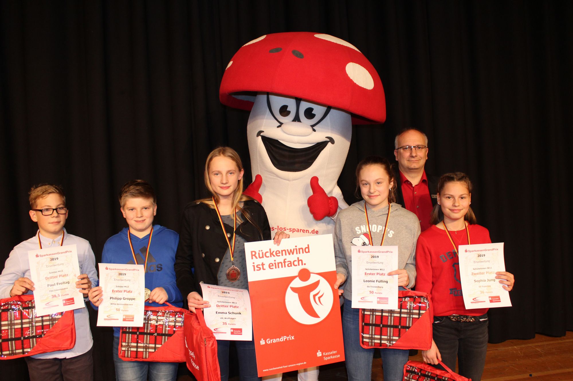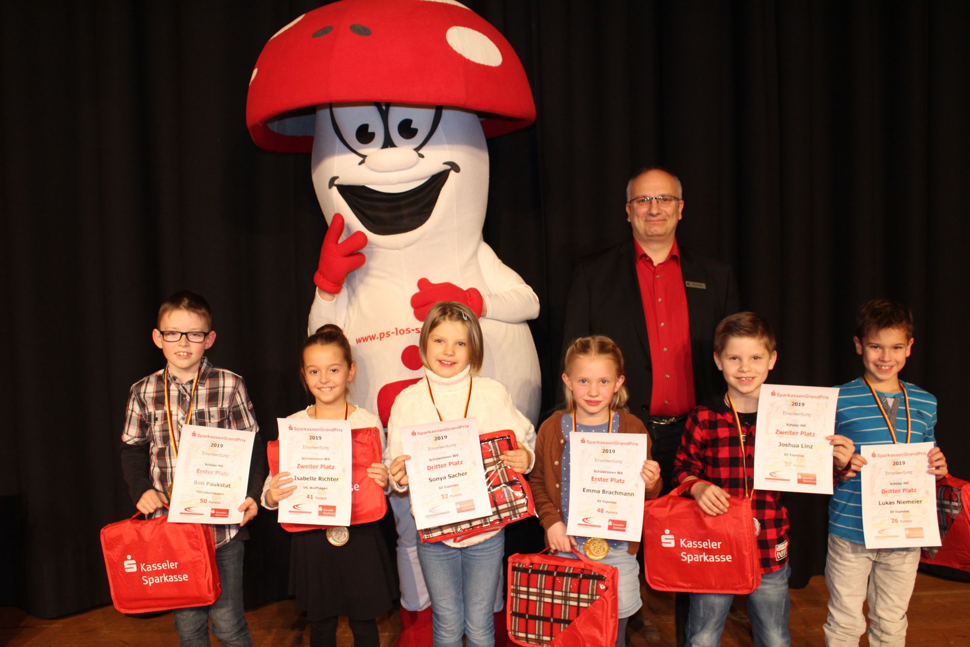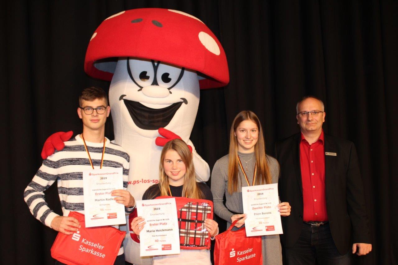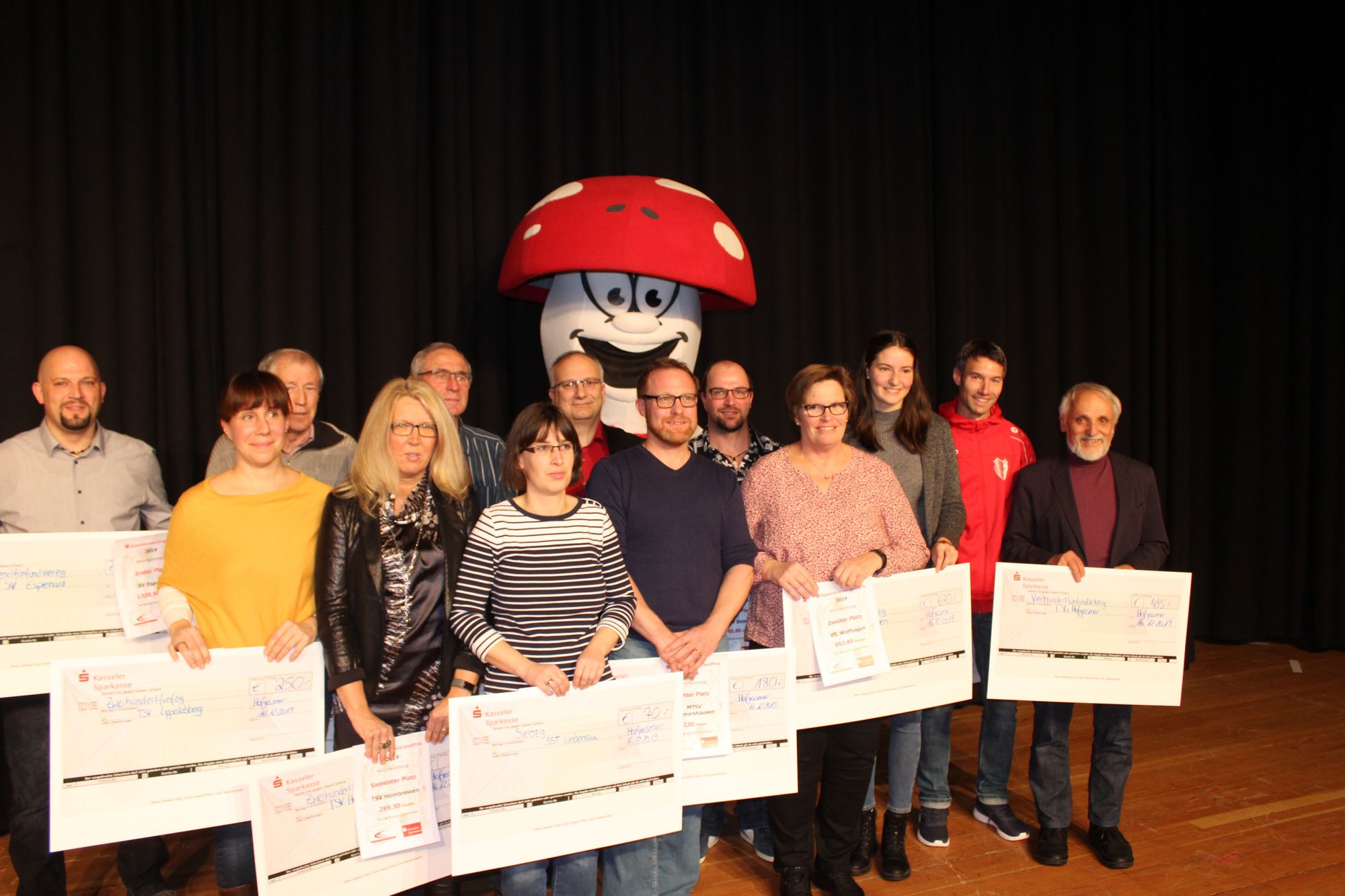 Bei der Siegerehrung in der Hofgeismarer Stadthalle übergaben Jürgen Heß (Marketing Kasseler Sparkasse), Carsten Berthold (Stellvertretender Leiter Center Hofgeismar), das Sparkassen-Maskottchen Winnie und der Kreisvorsitzende Steffen Grimm die Schecks an die Vertreter der Vereine. „Diese Erfolgsgeschichte werden wir auch weiter fördern und unterstützen“, blickte Carsten Berthold sehr zur Freude der Nachwuchs-Leichtathleten in das neue Jahr voraus.
