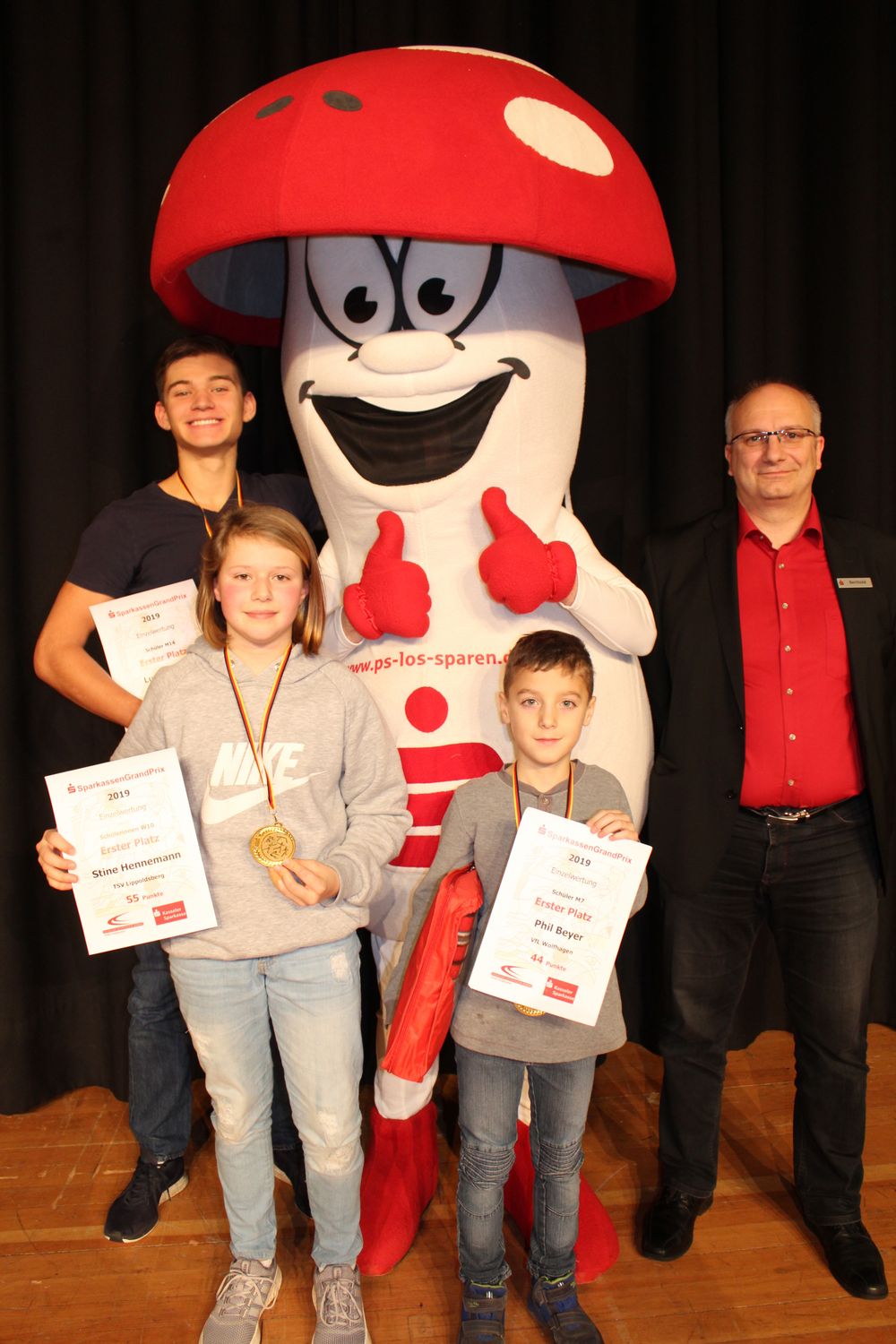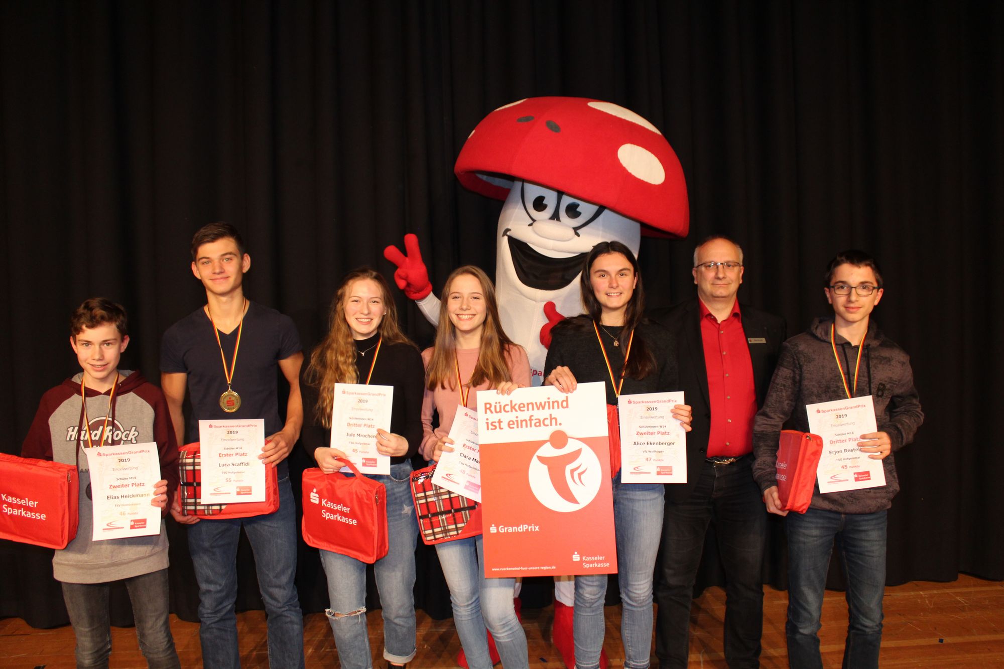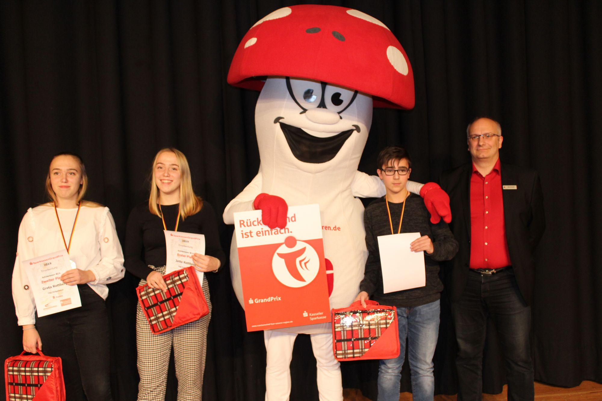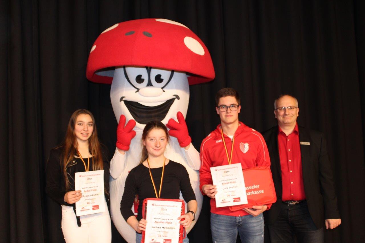 Bei der Siegerehrung in der Hofgeismarer Stadthalle übergaben Jürgen Heß (Marketing Kasseler Sparkasse), Carsten Berthold (Stellvertretender Leiter Center Hofgeismar), das Sparkassen-Maskottchen Winnie und der Kreisvorsitzende Steffen Grimm die Schecks an die Vertreter der Vereine. „Diese Erfolgsgeschichte werden wir auch weiter fördern und unterstützen“, blickte Carsten Berthold sehr zur Freude der Nachwuchs-Leichtathleten in das neue Jahr voraus.