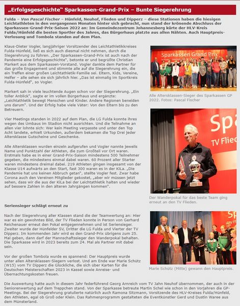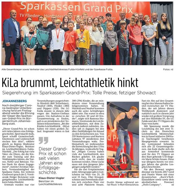 Nach dreijähriger Corona-bedingter Unterbrechung fand am Freitagabend wieder die Ehrung der Sieger des Sparkassen-Grand-Prix im Bürgerzentrum Johannesberg statt.