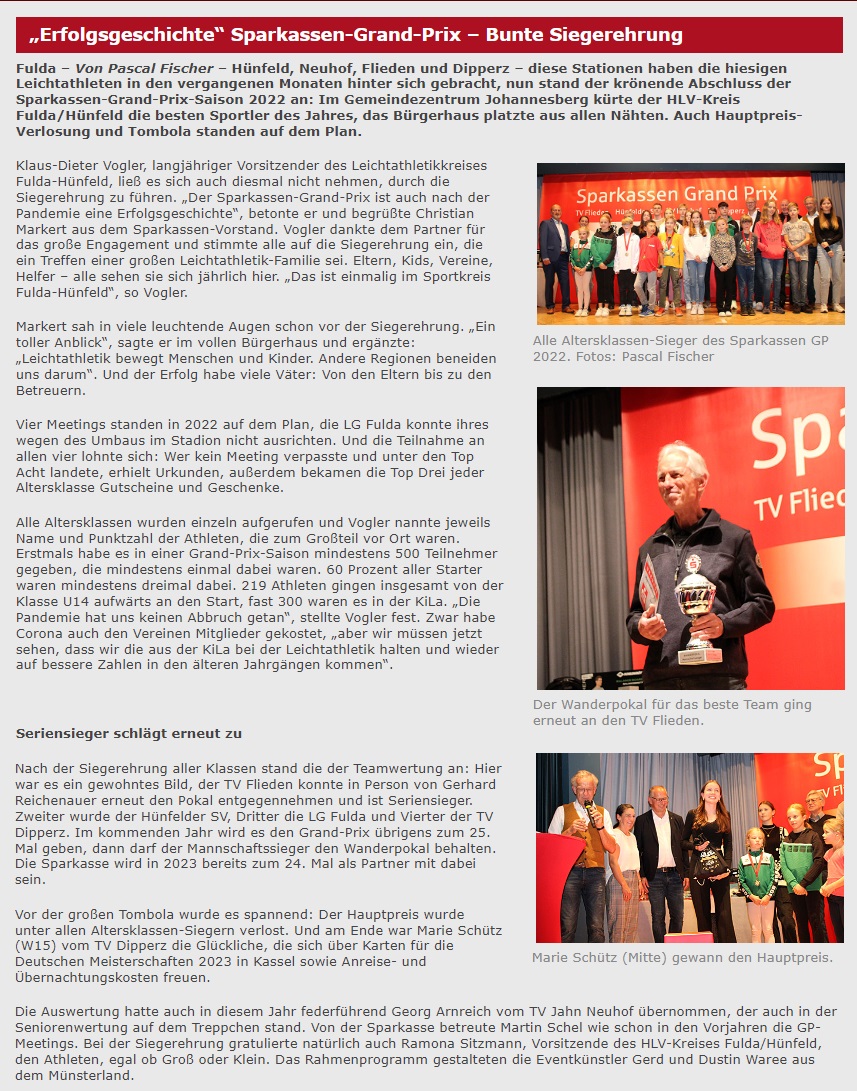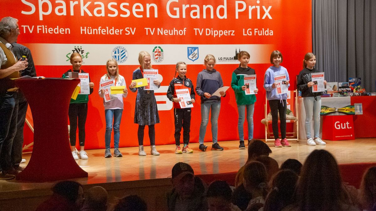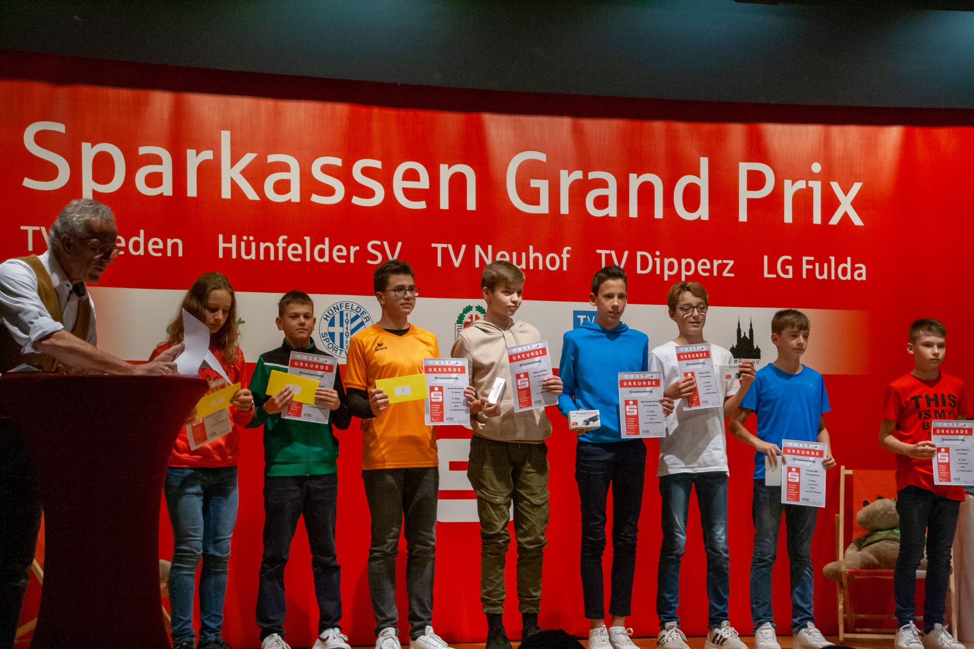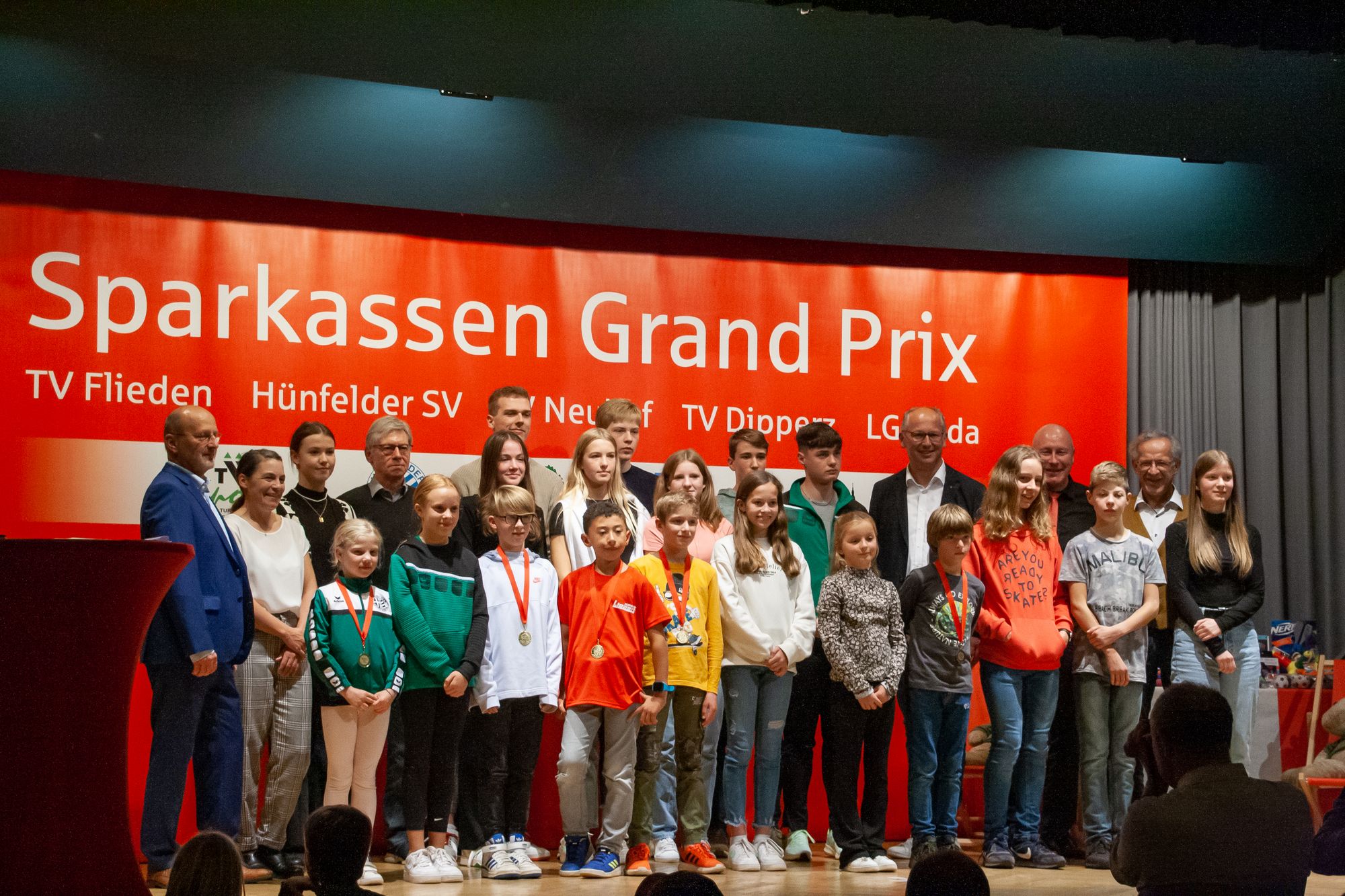 „Dieser Grand-Prix ist schon seit vielen Jahren eine Erfolgsgeschichte. Sport macht stark, Sport schafft Gemeinschaft. Emotionen und Leidenschaft stecken hier drin“, erklärte gleich zu Beginn Moderator Klaus-Dieter-Vogler, Beisitzer im Leichtathletikkreis Fulda-Hünfeld. „Der Erfolg hat viele Väter: die Eltern, die die Kinder zum Training und den Wettkämpfen fahren, die Trainer, Helfer und Betreuer. Vielen Dank für dieses Engagement“, meinte Christian Markert, Vorstandsmitglied der Sparkasse Fulda. Ein weiteres Grußwort sprach der 2. Vorsitzende Holger Bickmeier vom gastgebenden Leichtathletikkreis Fulda-Hünfeld.