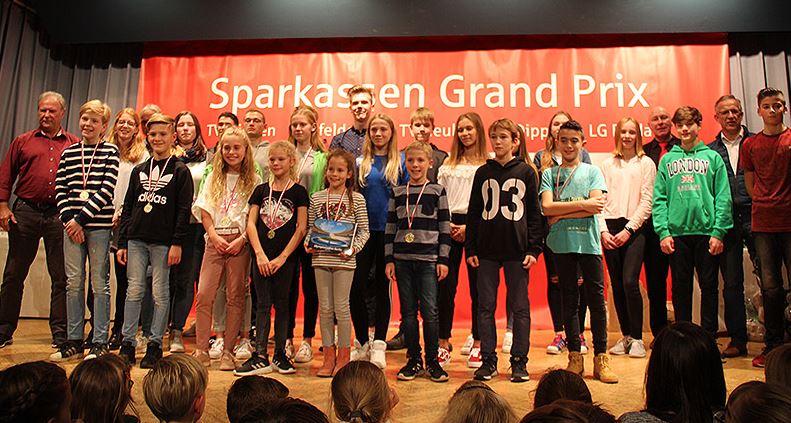 Zudem wurden Ehrungen der besten acht Grand-Prix-Teilnehmer in den einzelnen Altersklassen durchgeführt, von den Achtjährigen bis in den Aktivenbereich, wobei die Teilnehmerzahlen nach oben hin deutlich abnahmen. Besonders große Konkurrenz war mit 51 Teilnehmerinnen in der Altersklasse der neunjährigen Mädchen vorzufinden. Hier konnte sich Sarah Hübner vom TV Neuhof durchsetzen. In den höheren Altersklassen ragten als Seriensieger Theresa Reichenauer und Severin Zentgraf (beide TV Flieden) heraus. Insgesamt dominierte in den unteren Altersklassen der TV Neuhof, in den höheren Altersklassen hatten die Fliedener mehr erfolgreiche Teilnehmer. Sie alle konnten sich über Präsente freuen sowie die jüngeren Altersklassen über Medaillen für die ersten drei Plätze. In einer kleinen Pause zwischen den Ehrungen sorgte der „schnellste Xylophonist im Universum“ alias Dirk Scheffel für Stimmung im Saal und begeisterte das Publikum mit seinem musikalischen Können sowie eingestreuten Witzen.