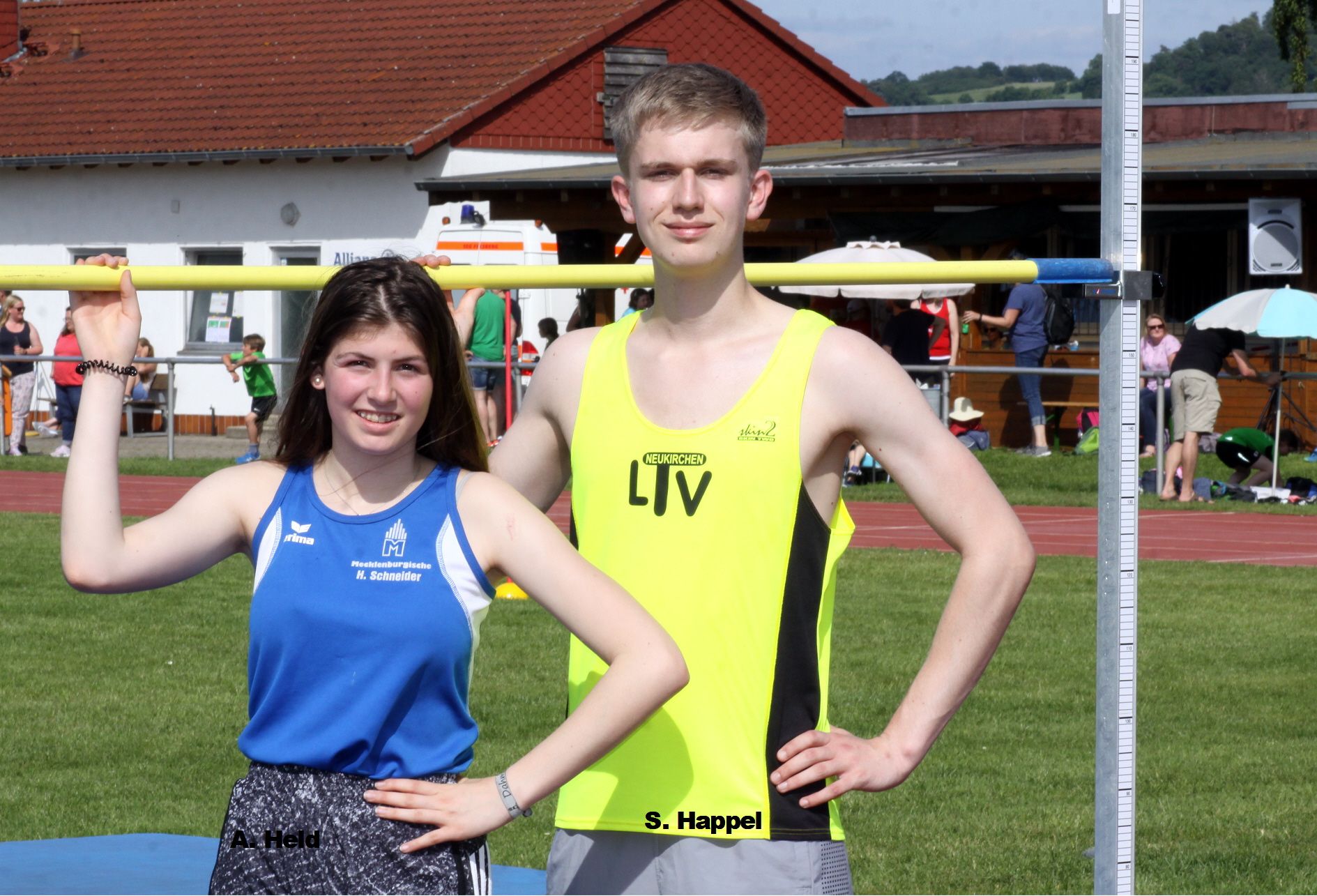 Simon Happel (LTV Neukirchen) gelangen die höchsten Sprünge der heimischen Starter. Mit im ersten Versuch überquerten 1,61 m hielt der Melanchthon-Schüler seinen Vereinskameraden Sebastian Schnell (1,57 m) sicher auf Distanz und flog mit 5,91 m im Weitsprung bis auf neun Zentimeter an die Sechs-Meter-Marke heran. Beide Athleten sind am Samstag im Parkstadion ebenfalls dabei.