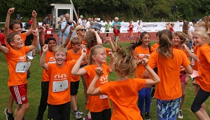 Zum zweiten Mal haben zwölf Grundschulen aus Kreis und Stadt Gießen die schnellste Staffel über 800 Meter ermittelt. Für die Grundschule Gießen West geht’s nun ins Olympiastadion. Direkt nachdem die Schlussläuferin der Grundschule Gießen West vor allen anderen über die Ziellinie rannte und die Uhr nach 800 Metern bei 2:09:70 Minuten stehen blieb, war klar: Die Grundschule Gießen-West steuert die Hauptstadt an. »Wir fahren nach Berlin«, sangen die sportlichsten Dritt- und Viertklässler im Jubelkreis nach dem Sieg im 16x50-Meter-Staffelwettbewerb der heimischen Grundschulen. Damit verteidigten die »Gastgeber« nicht nur den Titel vom Vorjahr, sondern stellten auch noch eine neue Bestzeit auf. Zur Belohnung geht’s am 27. August auf Einladung von ISTAF ins Berliner Olympiastadion – dort tritt die Grundschule Gießen-West in einem Einlagewettbewerb vor rund 50 000 Zuschauern auf. <ENDE/> »Wir haben richtig viel trainiert, deswegen war ich vor dem Lauf auch etwas nervös. Bei der Staffel-Übergabe habe ich immer mitgezittert«, sagte der zehnjährige Reoha Haddon vom Gießener Siegerteam. »Jetzt fahre ich mich mit meinen Freunden nach Berlin, das ist ziemlich cool.« Die erst zum zweiten Mal ausgetragene Veranstaltung, bei der zwölf Grundschulen aus Landkreis und Stadt Gießen die schnellste 16x50-Meter-Staffel ermittelten, fand großen Anklang. »Hier wird die Leichtathletik in den Vordergrund gerückt und findet nicht wie die Kreismeisterschaften gefühlt in der hintersten Ecke statt«, sagte der 30-jährige Adrian Becker, LAZ-Trainer und Sportkoordinator der Siegerschule. Der begabte Zehnkämpfer sieht für seine Grundschüler in dem Laufwettbewerb gleich zwei Vorteile: »Die Kinder lernen, was Leichtathletik heißt: Nämlich auf den Punkt genau da zu sein. Wenn eine Staffel fallen gelassen worden wäre, hätten wir sicher fünf Sekunden verloren.« Zum anderen wunderte sich der Lehrer über das eine oder andere Kind: »Sie konzentrieren sich hier teilweise mehr als in der Schule.«