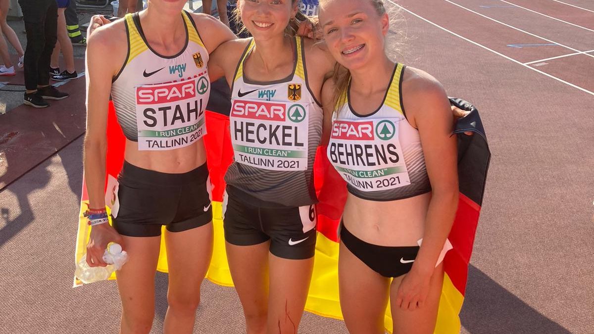 Staffelsilber für Antonia Dellert und Holly Okuku, Staffelbronze für Okai Charles