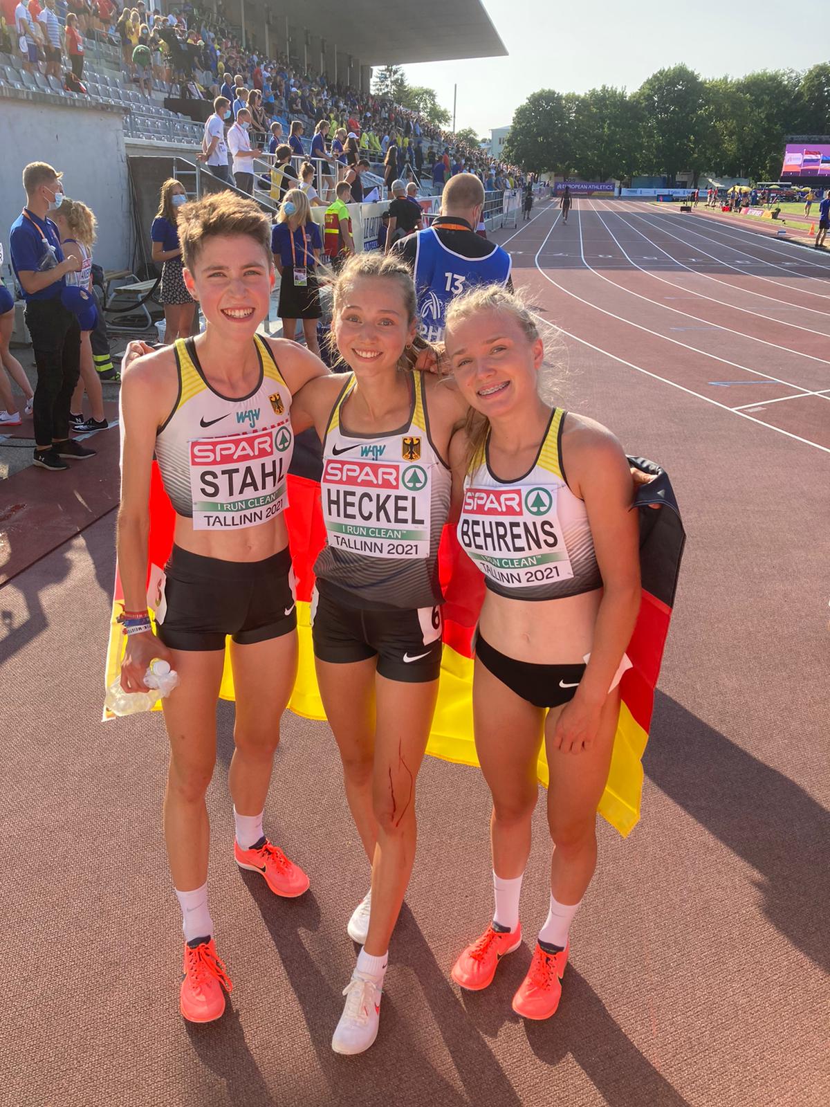 Der letzte Wettkampftag der U20 Europameisterschaften in Tallinn brachte für unsere Hessen noch zwei Medaillen. Antonia Dellert und Holly Okuku erliefen mit der 4x100m Staffel in einer Zeit von 44,68 Sekunden die Silbermedaille. Antonia übergab das Staffelholz gleichzeitig mit den Teams aus Großbritannien, Polen und der Schweiz an Holly, die sich gegen die Polinnen durchsetzen konnte und sich nur ganz knapp den Britinnen geschlagen geben musste, die in 44,62 Sekunden gewannen.