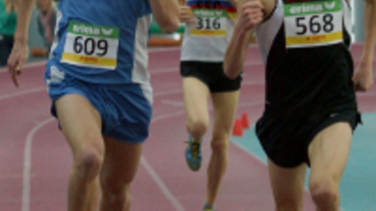 In seinem ersten 1.500 Meter-Rennen seit knapp drei Jahren fing 800 Meter-Spezialist Marc Reuther (Wiesbadener LV) den scheinbar schon enteilten Marc Tortell (TV Rendel) ab und sicherte sich in 3:58,01 Minuten den Titel. "Eigentlich war ich schon zwei Runden vor Schluss kaputt. Doch ich kann am Ende meistens noch zulegen", erklärte der Schützling von Georg Schmidt.<ENDE/> Nach einer Oberschenkelverletzung im November hat Reuther die Semesterpause über Weihnachten genutzt, um wieder zu Kräften zu kommen. "Ich plane noch drei Wettkämpfe." In Karlsruhe (31. Januar) werden es erstmals in diesem Winter die 800 Meter sein, in Erfurt (3. Februar) noch einmal die 1.500 Meter ("Meine Starts auf dieser Strecke sind ein Experiment für die Zukunft"). Danach wird der Student der Wirtschaftswissenschaften an der Universität Frankfurt entscheiden, welche Strecke er bei den Deutschen Jugendmeisterschaften in Neubrandenburg (14./15. Februar) in Angriff nehmen wird. Ausdruck des erfreulichen Niveaus über 1.500 Meter in der männlichen Jugend: auch Marc Tortell (3:58,16) und Lukas Abele (SSC Hanau-Rodenbach; 3:59,94) blieben unter der 4-Minuten-Marke.
