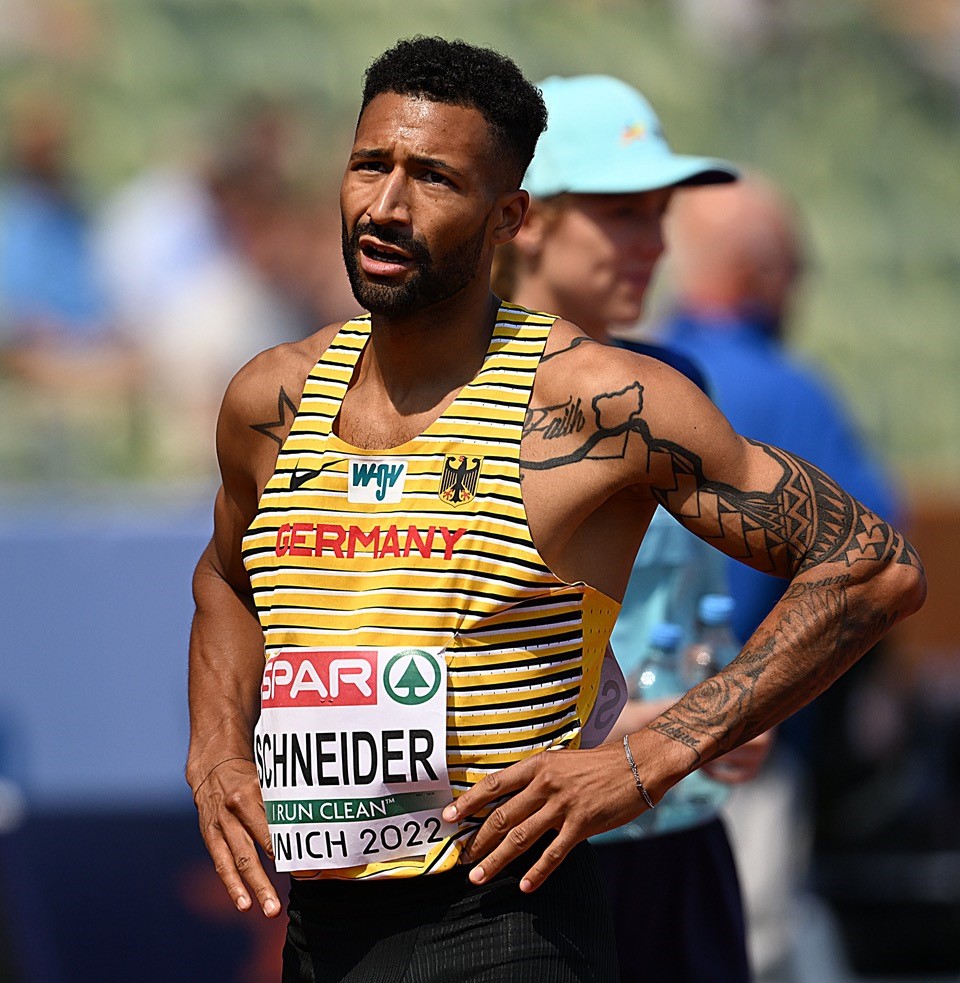 Nur einen Tag nach seinem starken 400-Meter-Vorlauf musste Patrick Schneider (TV Wattenscheid) schon wieder ran. Der von Georg Schmidt am Frankfurter Olympia-Stützpunkt betreute Langsprinter blieb erneut unter 46 Sekunden und erkämpfte sich in 45,92 Sekunden in seinem Zwischenlauf den vierten Platz. Das reichte am Ende aber leider nicht aus, um über die „Zeit-Regel“ ins Finale zu kommen. Das letzte Tickets löste der junge Schweizer Lionel Spitz (noch U23) mit 45,56 Sekunden.