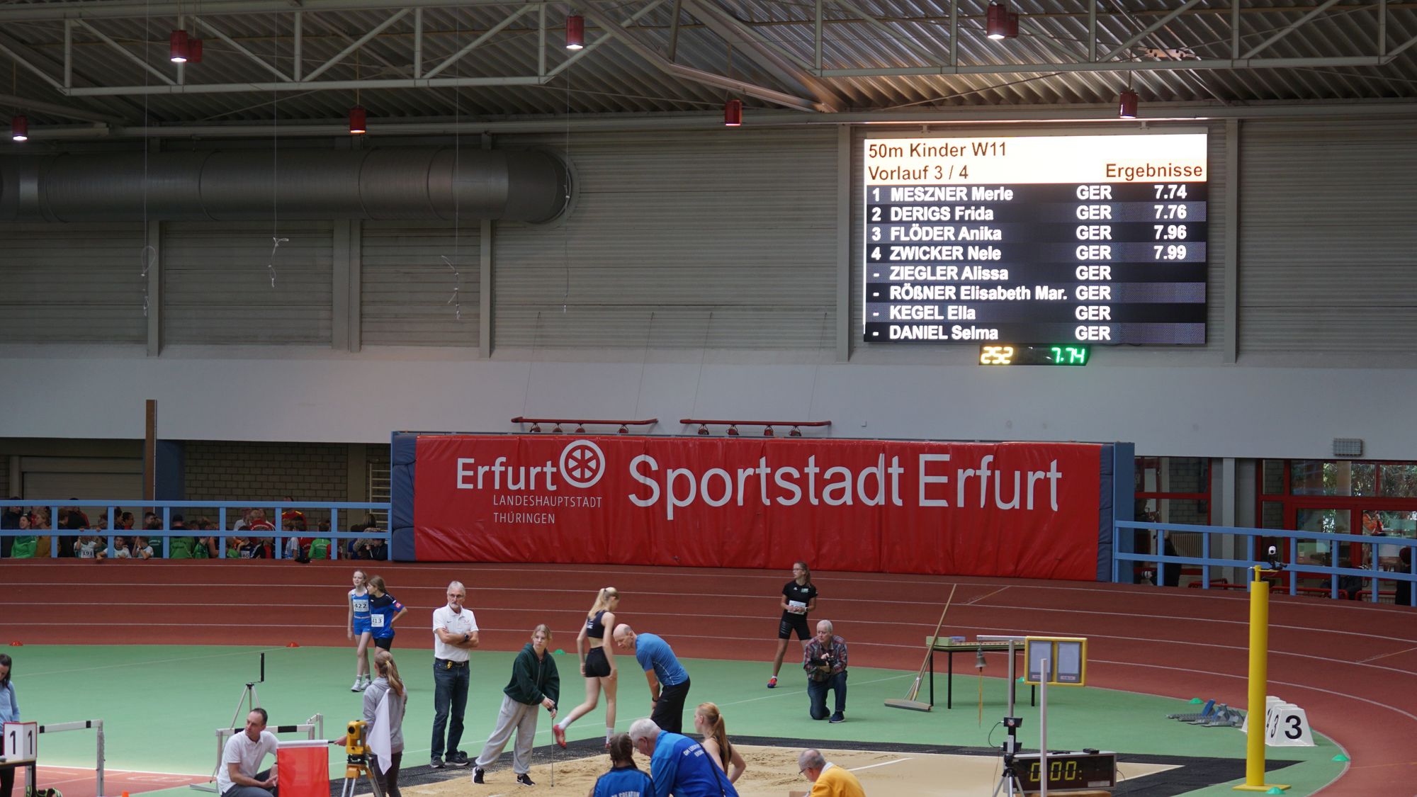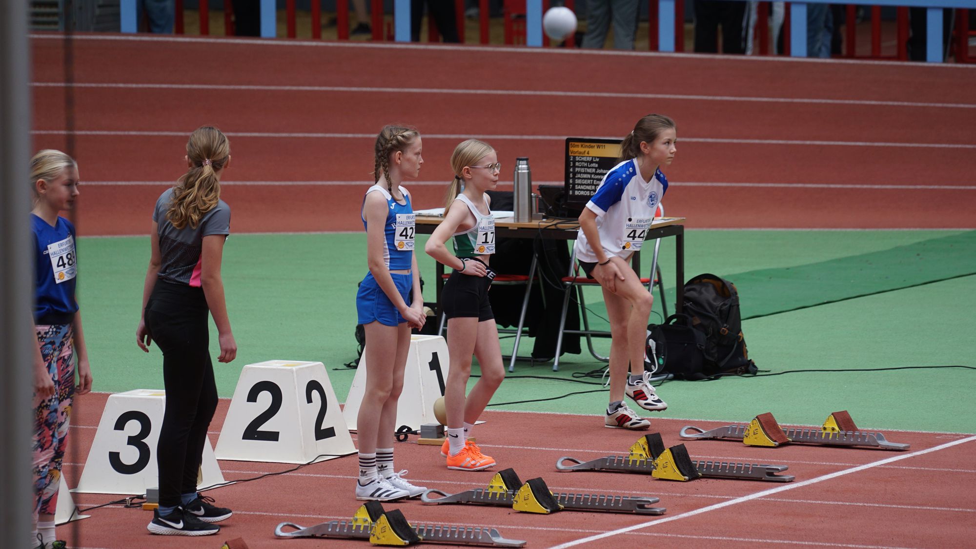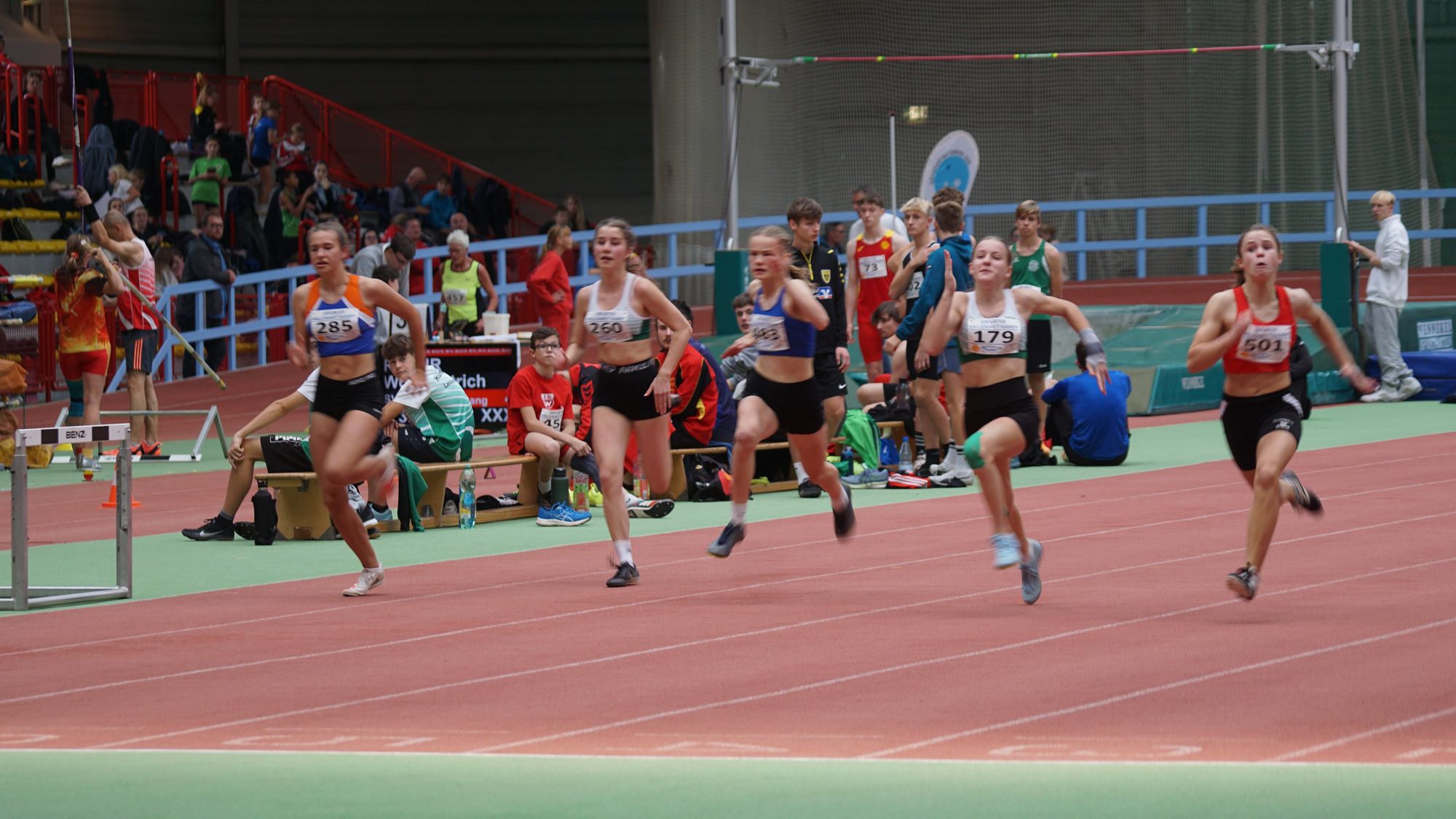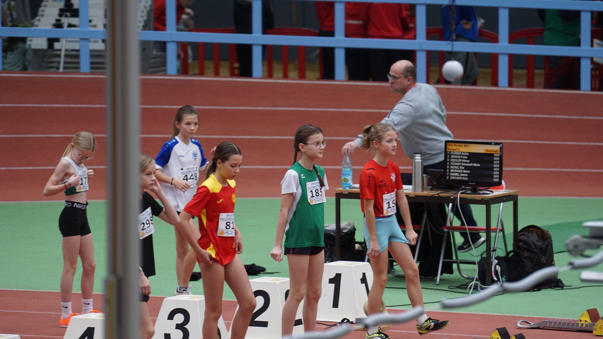 - Kommen wir zu Emma Röhrdanz die von der TSG Slitisa Schlitz zu uns nach Hünfeld wechselt. Emma ebenso wie Nika über 60m im W13-Finale läuft hier in 8,40 Sekunden auf Platz „3“. Und unterbietet mit dieser Zeit die Norm für die Süddeutschen Meisterschaften der Altersklasse W18 um 0,05 Sekunden! Da darf sie altersbedingt wie Nika auch nicht starten, aber…. Und auch Emma das erste Mal in einer Leichtathletik-Halle.