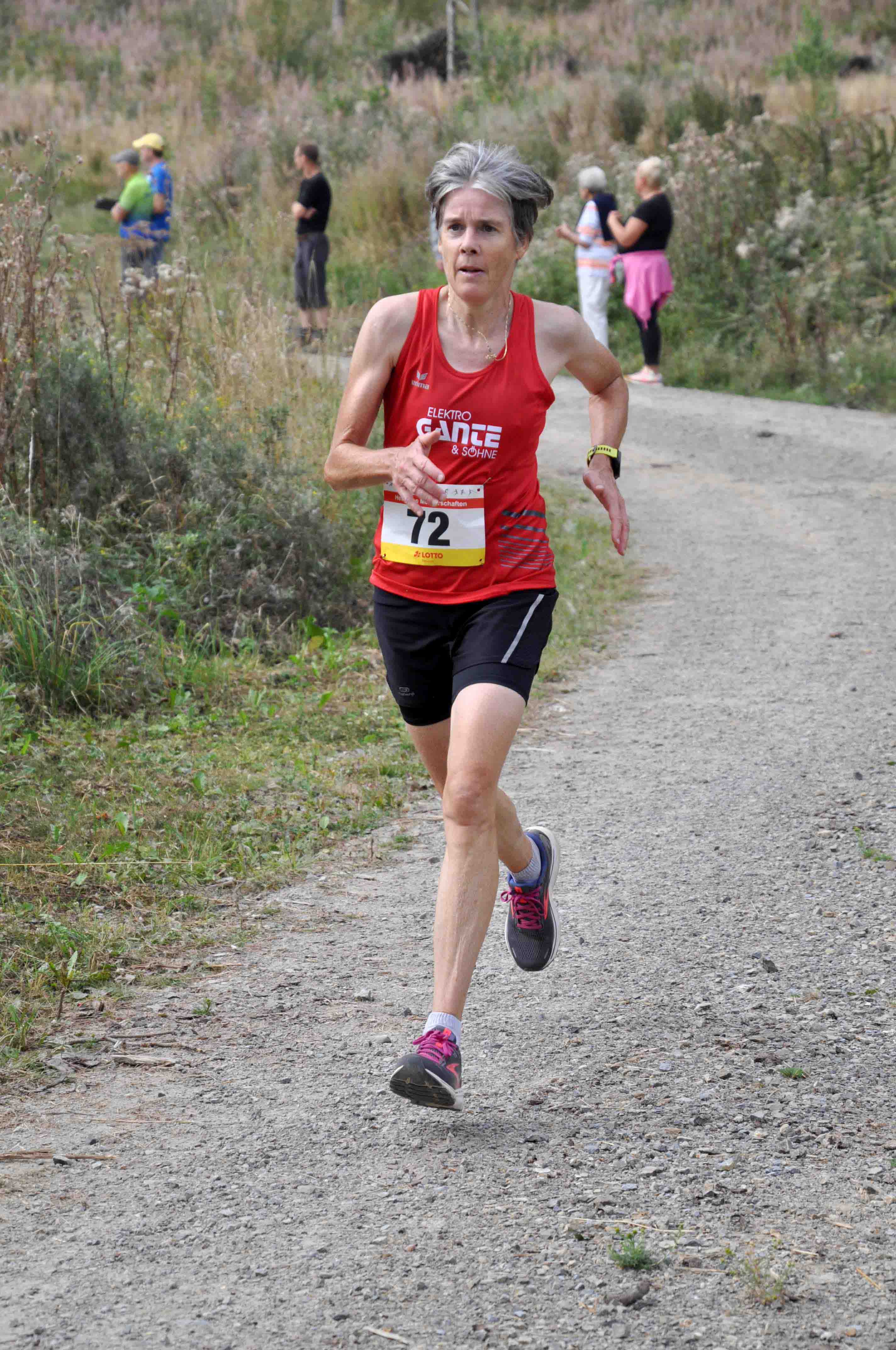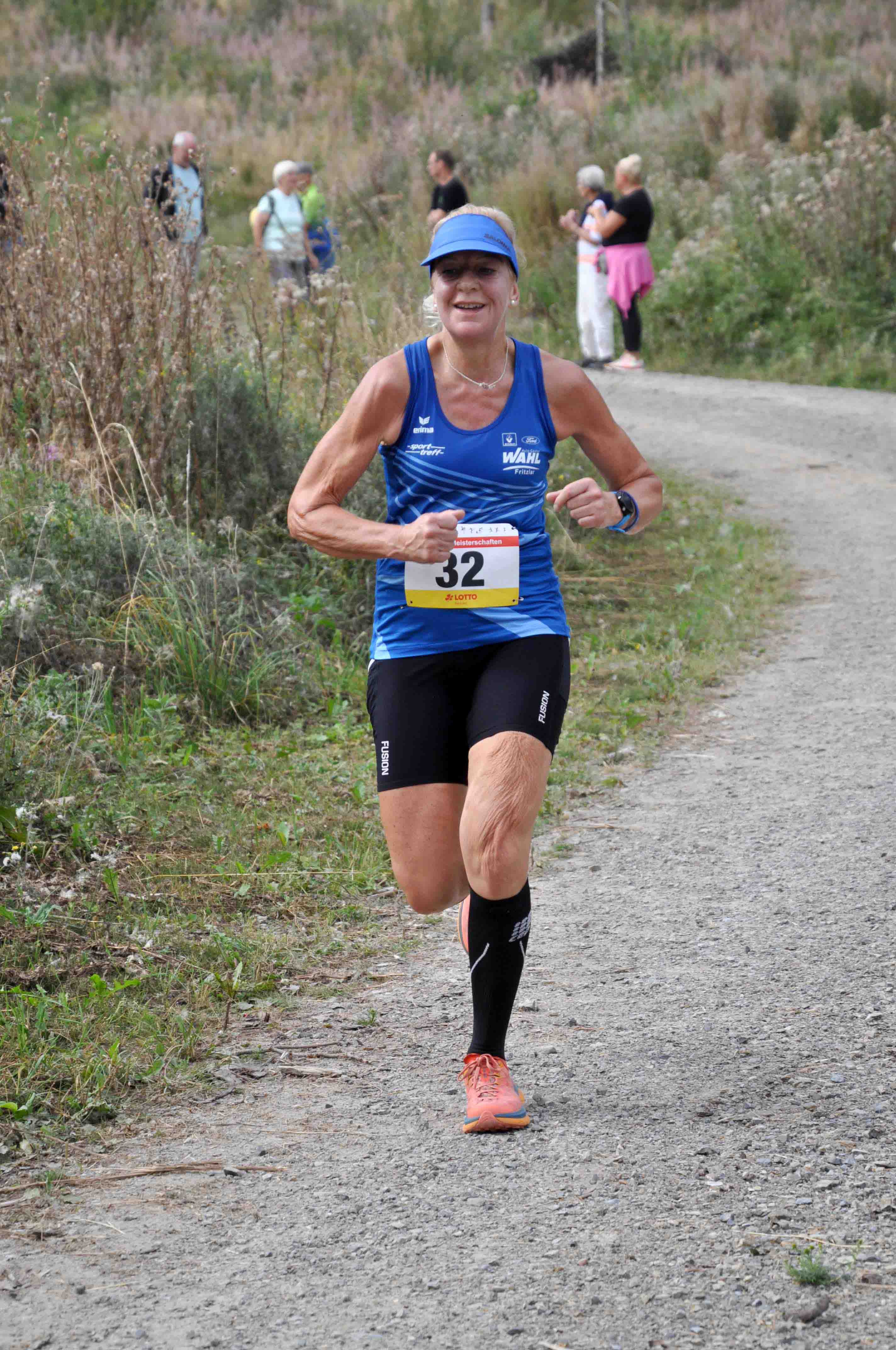In den Altersklassen waren die W30 gar nicht und die W35, W40, W45, W60, W65 und W70 nur einfach besetzt. Das führte dazu, dass die Bedeutung der Medaillenstandards durch den die Siegerehrung moderierenden Hess. Laufwart kurz erklärt wurde. (Der Sinn der Medaillenstandards wurde am Schluss der Veranstaltung von einem Läufer kritisch angemerkt.) In der W45 und der W65 gab es nämlich für die Siegerinnen Daniela Ludwig-Crede, SV Blau-Weiß Dodenhausen, und Cornelia Wagener, LC Diabü Eschenburg, eine Goldmedaille, in den anderen Altersklassen nicht. So blieben für Lena Reeg, SCM, Alexandra Benthe, TSV Niederelsungen, Ilona Hildmann, TV Hess. Lichtenau, und Marianne Domes, SV BW Dodenhausen, nur Urkunden als Auszeichnung. Wie bereits erwähnt heißt die Titelträgerin der W50 Susanne Heinbach, LG Wettenberg, mit einer starken Leistung von 50:31 min. Nicole Ramus, TSV 1889 Geismar, wurde Zweite mit fast zehn Minuten Rückstand vor Melanie Knauf auf Platz 3 und Alicia Torres Minoves, beide TSV Niederelsungen. Knapp unter einer Stunde blieb die Siegerin der W55, die Niederelsungerin Martina Stück. Silke Altmann vom Laufteam Rotenburg und Sabine Bergmann vom Laufteam Kassel folgten jeweils in respektvollem Abstand auf den Plätzen 2 und 3.