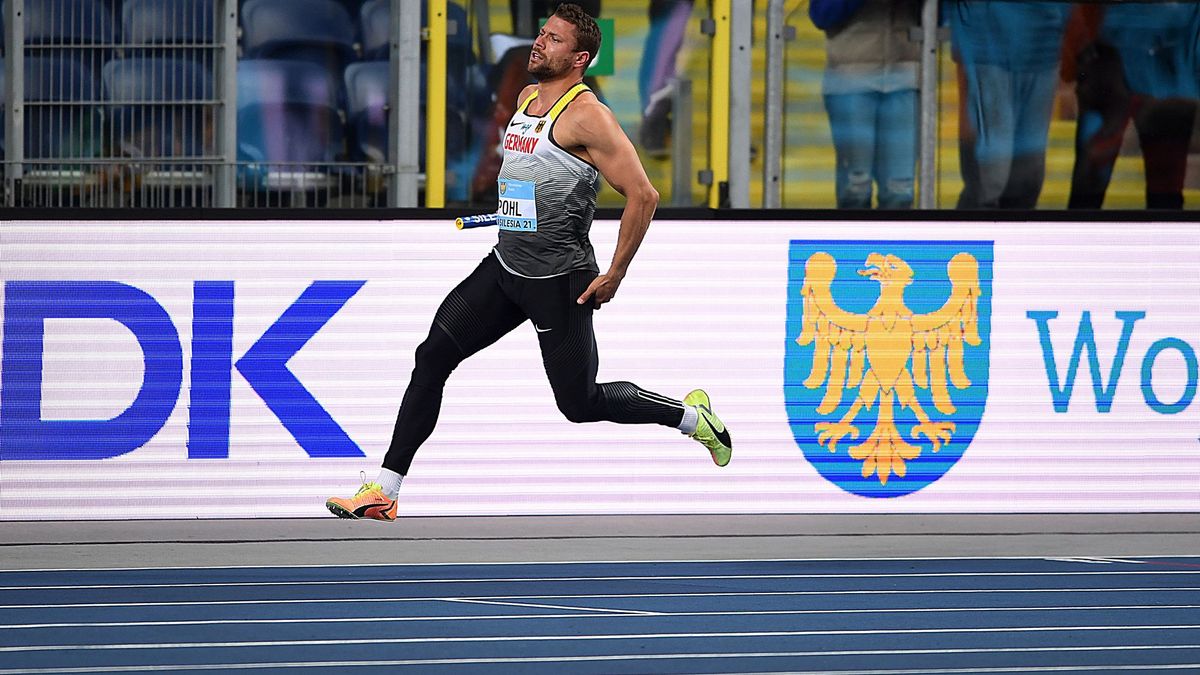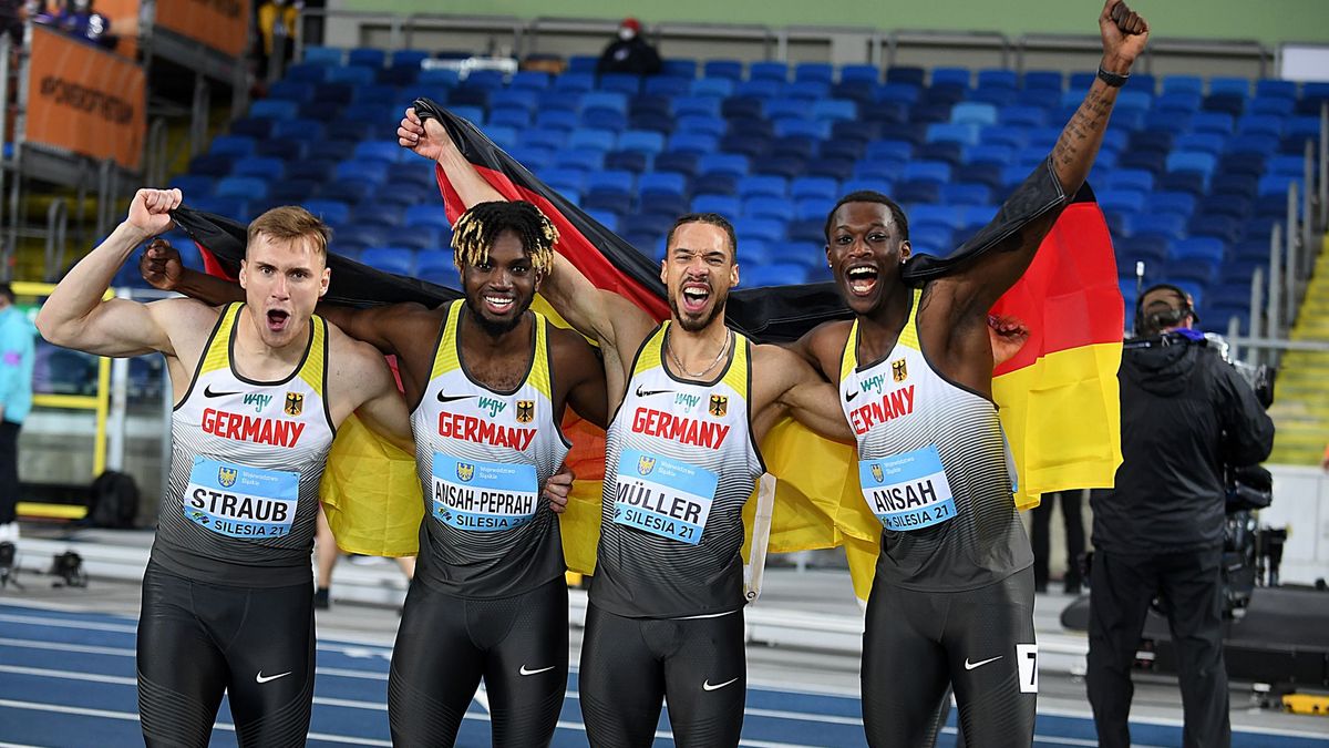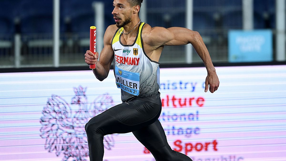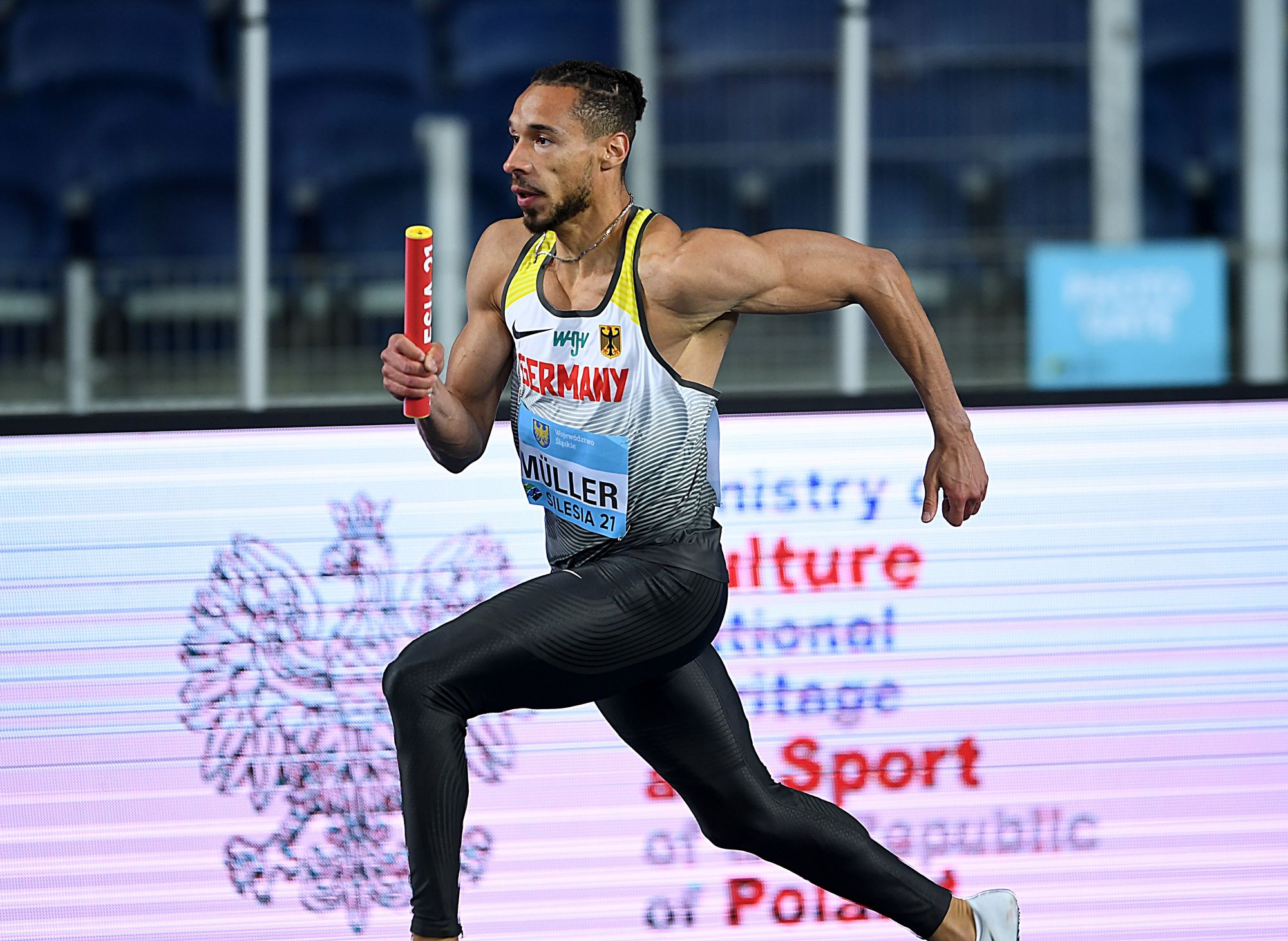 Startläufer Steven Müller führt DLV-Quartett bei den „World Athletics Relays“ im polnischen Chorzow zum Sieg über 4x200 Meter.