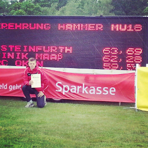 Im weiteren Saisonverlauf hält Konstantin Steinfurth selbst Weiten um 65 Meter für realistisch. Die erste Möglichkeit bietet sich ihm beim Werfermeeting in Fränkisch-Crumbach (9. Juni). Danach folgen die Hessischen Jugendmeisterschaften (U18) in Wetzlar (21./22. Juni) und die Deutschen Jugendmeisterschaften in Wattenscheid (8. bis 10. August). "Da möchte ich vorne mitmischen", sagt Steinfurth entschlossen, der 2013 als bester deutscher Hammerwerfer des Jahrgangs 1997 abschloss.