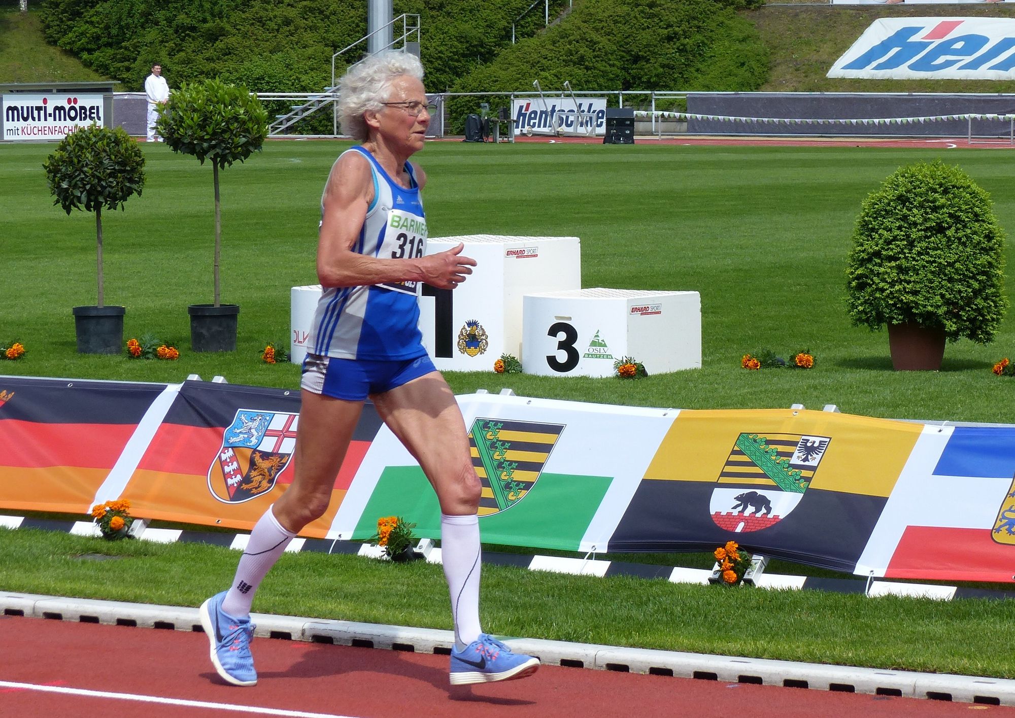 Die Senioren haben es herausgerissen für den Hessischen Leichtathletik-Verband bei der Straßenlauf-DM über 10 Kilometer in Bremen. Insbesondere die Frauen waren auf dem Deich-Rundkurs neben dem Weserstadion sehr erfolgreich. Beispielsweise Sandra Morchner (Grün-Weiß Kassel) als Gesamtachte und W45-Siegerin in 35:32 Minuten. Auf Platz vier: Karin Schenk (TV Waldstraße Wiesbaden/39:31). Auch in der W60 kam die Titelträgerin aus Hessen, Conny Wagner (LC Eschenburg) war in 42:13 Minuten nicht zu schlagen. Wie Margret Göttnauer LG Bad Bad Soden/Sulzbach/Neuenhain) eine Altersklasse darüber in der W65. Sie gewann in 45:17 Minuten. Anja Ritschel vom TV Waldstraße Wiesbaden wurde Zweite in der W70 (50:14). In der U23 lief ihre Vereinskollegin Franziska Althaus in 38:14 Minuten auf Platz 13.