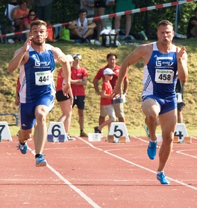 Eine sehr gute Rolle spielten die schnellen Friedberger Herren auch in den Einzelrennen. Bei leichtem Gegenwind (-0,6) wurde Pohl über 100 Meter Dritter in 10,54 Sekunden, Daum Fünfter (10,66). Im Zwischenlauf hatte Daum seine persönliche Bestzeit auf 10,55 Sekunden verbessert, die 10,44 Sekunden von Pohl im Zwischenlauf wurden leider vom Winde verweht (+3,0). Wie auch die Finalzeiten über 200 Meter mit Rang zwei für Daum (21,18) sowie Platz drei für Pohl (21,40). Der offizielle Schiebewind betrug 2,5 Meter pro Sekunde, „und das bei schlaff hängenden Fahnen“ (Daum via Facebook). Beide Sprinttitel gingen übrigens nach Saarbücken. Über die kurze Distanz an Timoty Abeyae (10,49), über die lange an Robert Hind (21,02). Über 200 Meter absolvierte auch Zehnkämpfer Fabian Christ (LG Eintracht Frankfurt) einen erfolgreichen Leistungstest (21,75/verzichtete auf das Finale), ebenso im Stabhochsprung (4,80 Meter/3.). Und noch einmal zum Sprint. Auch die 4x100 Meter der Frauen war fest in hessischer Hand - die LG Friedberg-Fauerbach in der Besetzung Abike Tabel, Gesa Katharina Kratzsch, Alina Schneider und Anna Hülsmann gewann den Titel in 47,61 Sekunden.
