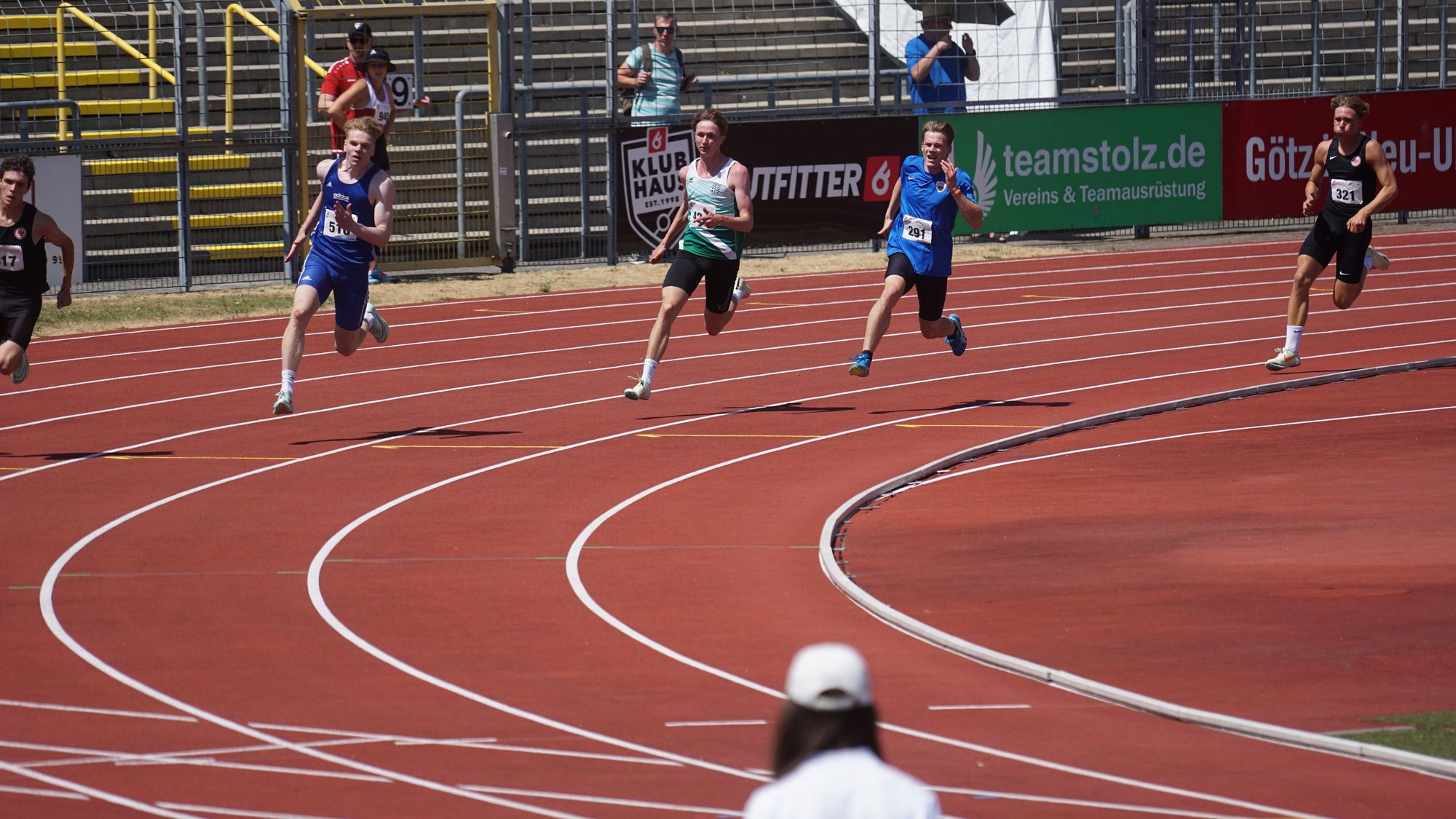 Am heutigen Sonntag dann der 200m-Sprint. Heute ist es nur ein Zeitlauf; also nur ein Sprint! Darian startet im dritten von drei Läufen; die Läufer mit den besten Meldezeiten sind hier unter sich! Der Startschuss für Darians Lauf ertönt! Und gleich darauf wird abgeschossen! Fehlstart!! Die Schiedsrichter beraten; alle dürfen erneut starten! Der Startschuss ertönt erneut und nach 22,47s ist Darian mit neuer persönlicher Bestzeit im Ziel. Im Ergebnis Platz 5 erreicht! Und nebenbei der schnellste Hesse; der amtierende Hessenmeister direkt hinter Darian.