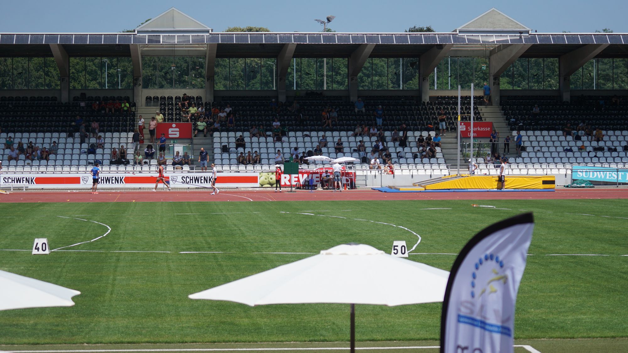 - 16:05 ==> Das Finale! Darian startet auf der Außenbahn, auf Bahn 8. Der Lauf ist etwas durchwachsen, man merkt nun schon etwas Nervosität. Erste Süddeutsche Meisterschaft, das erste Mal ein Wettkampf über 3 Sprints (Vorlauf, Zwischenlauf, Finale). Im Ziel Platz 6 in 11,42s!