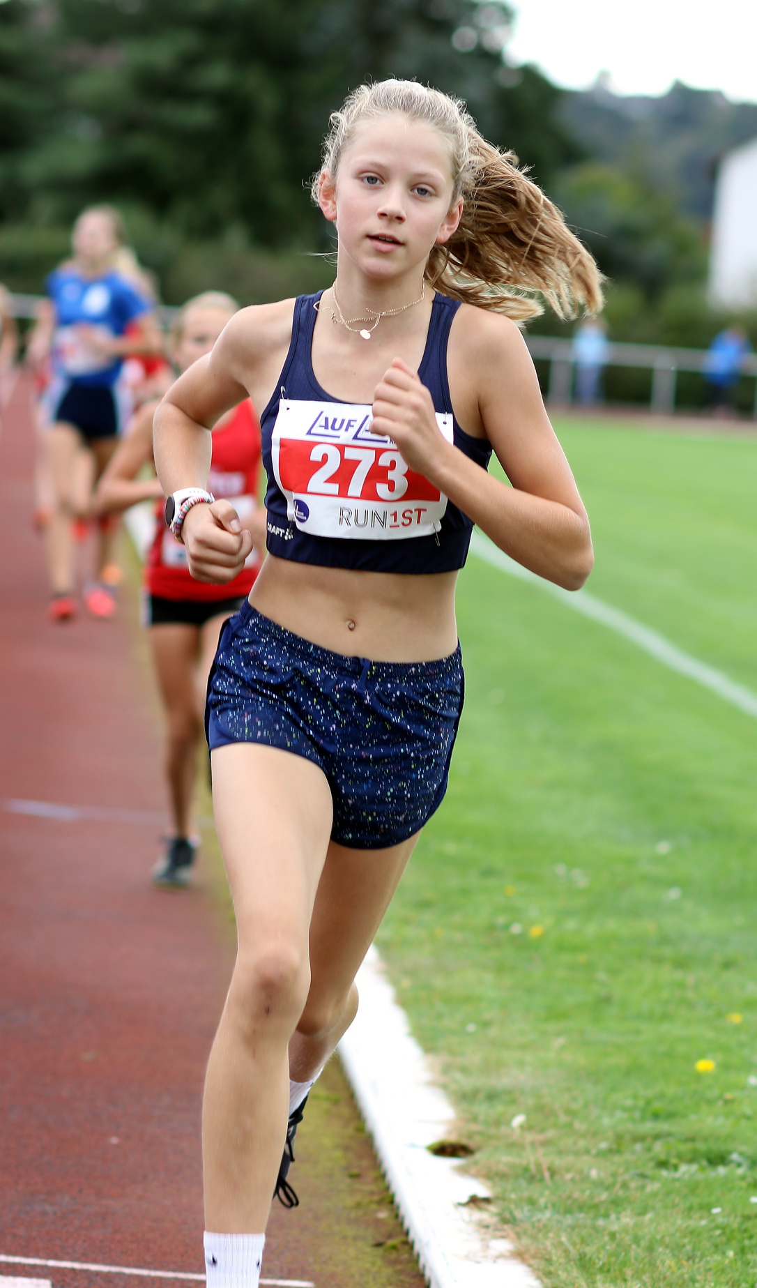 Vier Mal gab es Silber. Bei der in die Veranstaltung eingebetteten Titelkämpfe über 3mal 800 Meter der weiblichen Jugend U 18 lief die StG Rotenburg-Bebra in 7:35,56 Minuten in der Besetzung Johanna Weber, Marlene Altmann und Emilia Wischer hinter der LG Rhein-Wied auf den zweiten Platz.