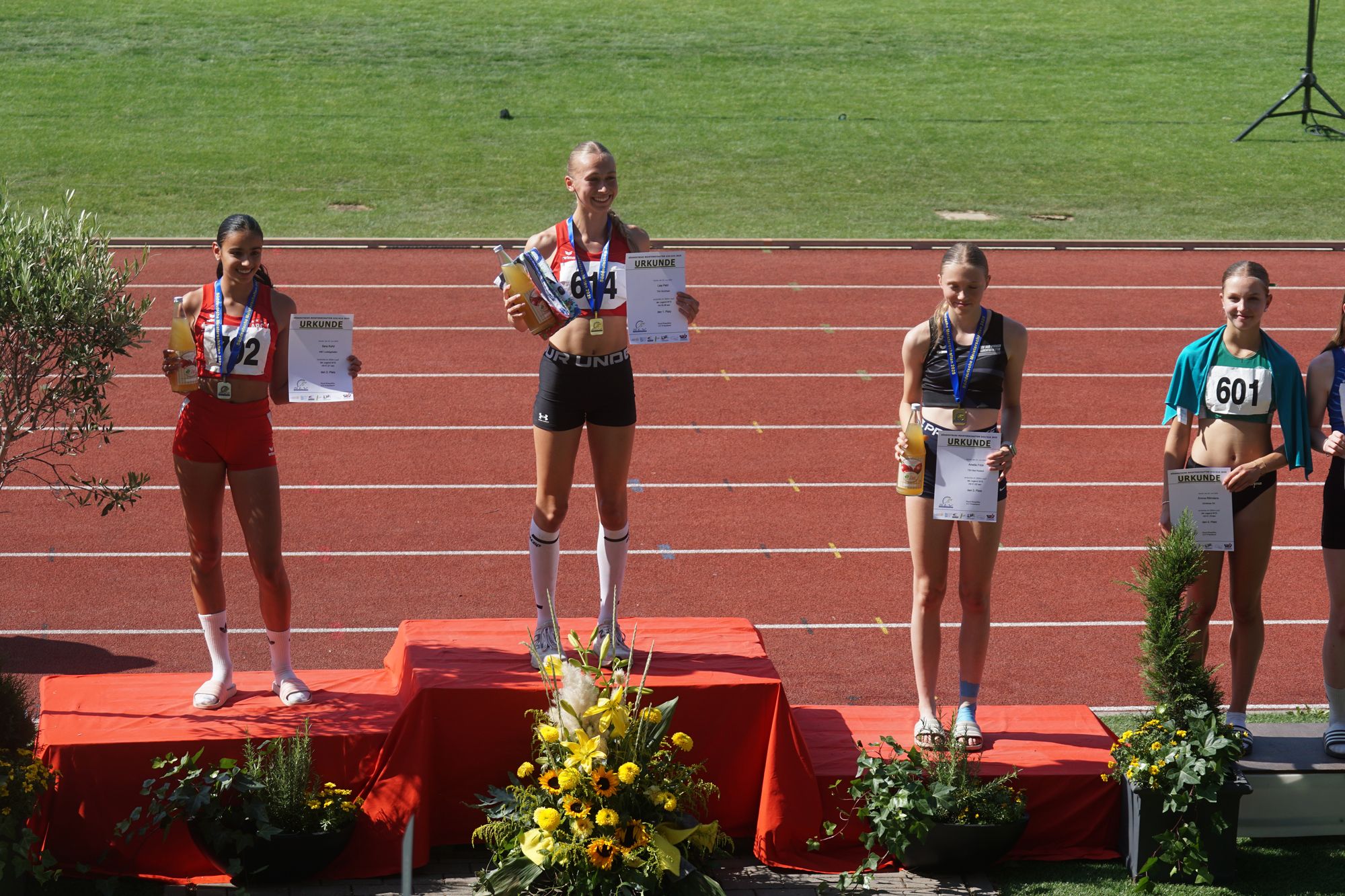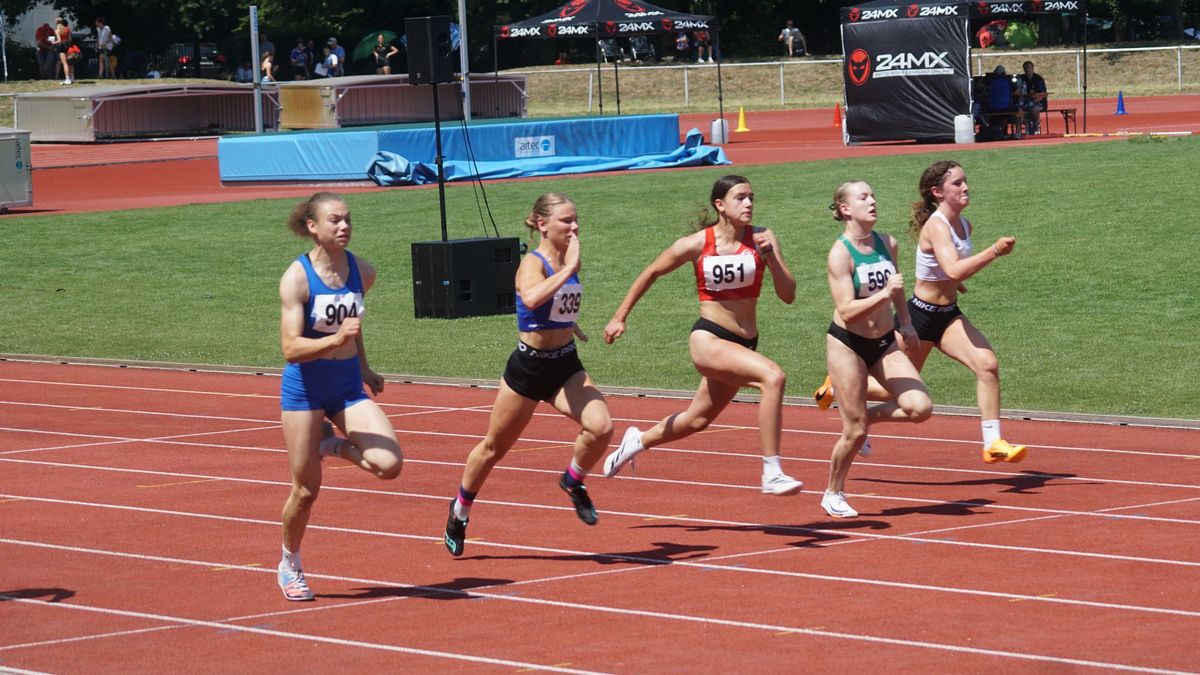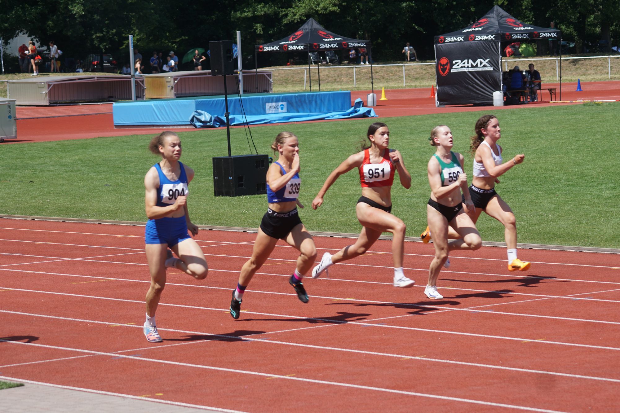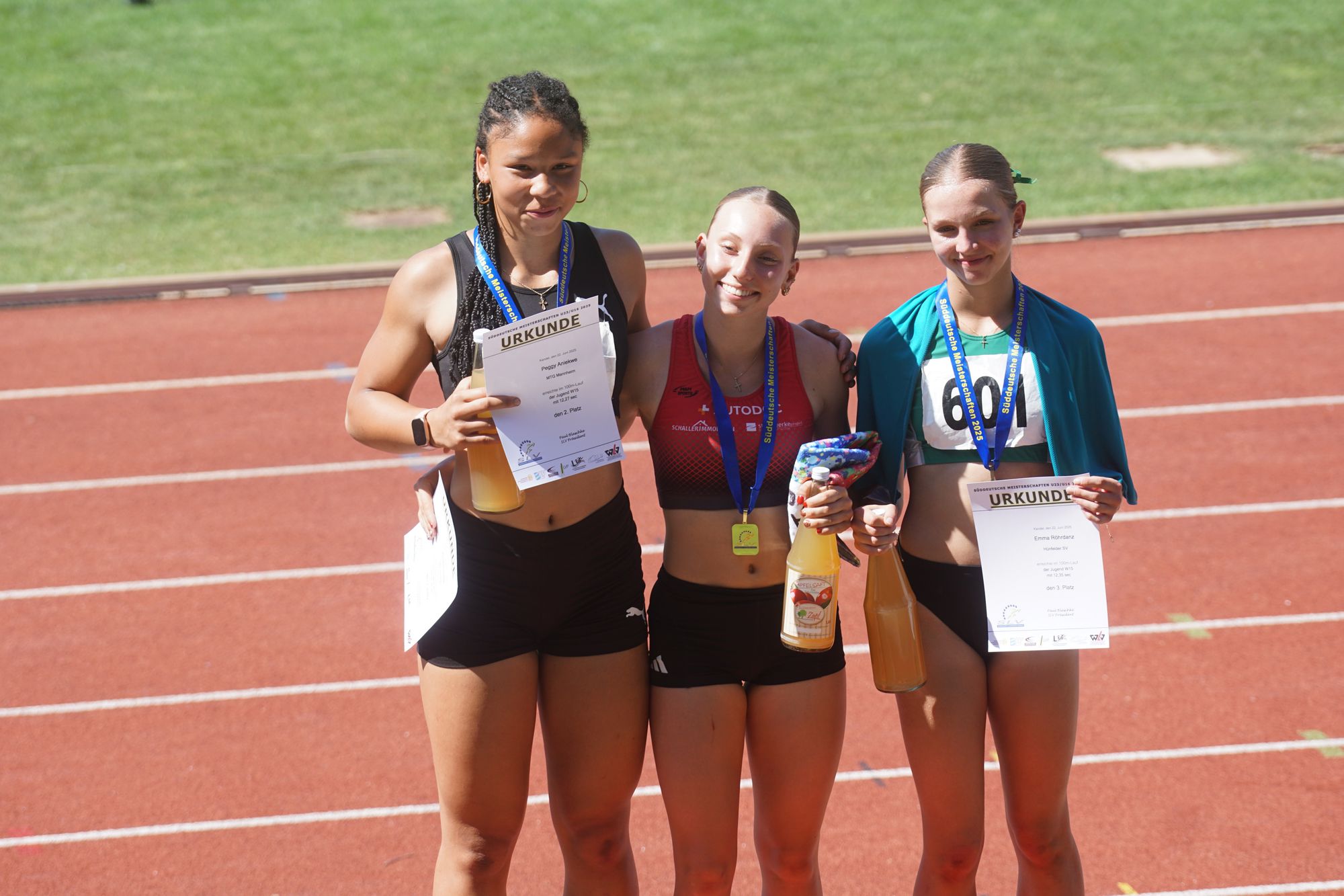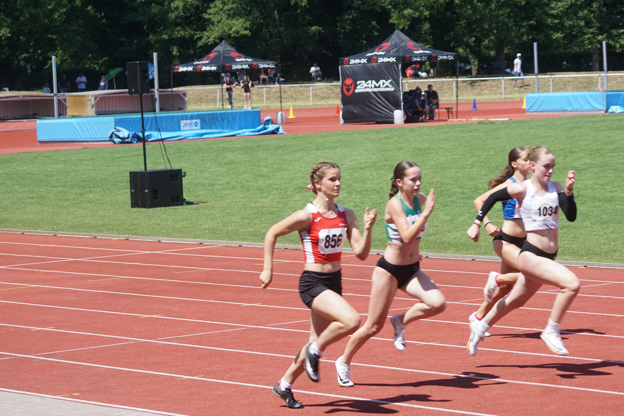 Es geht Schlag auf Schlag. Das Finale über 100m bei der W15 folgt kurz hinter dem Staffelrennen. Emma Röhrdanz holt hier in neuer persönlicher Bestzeit von 12,35 Sekunden den 3. Platz.