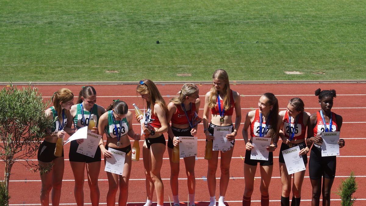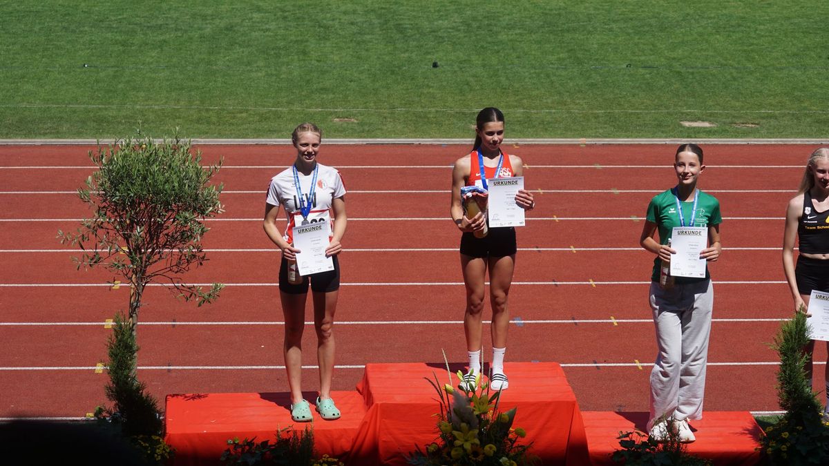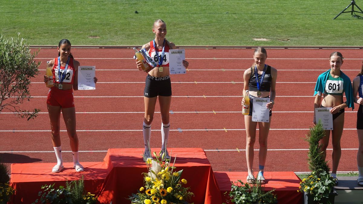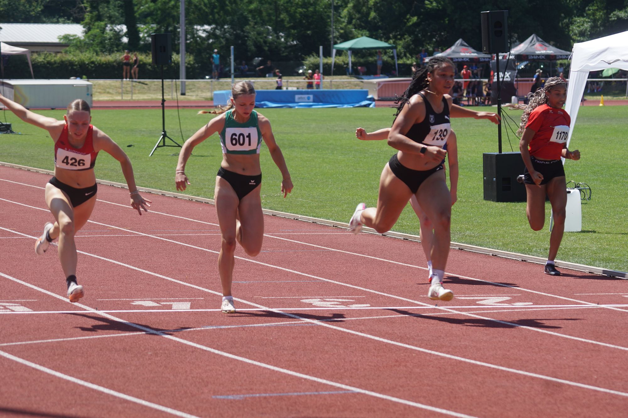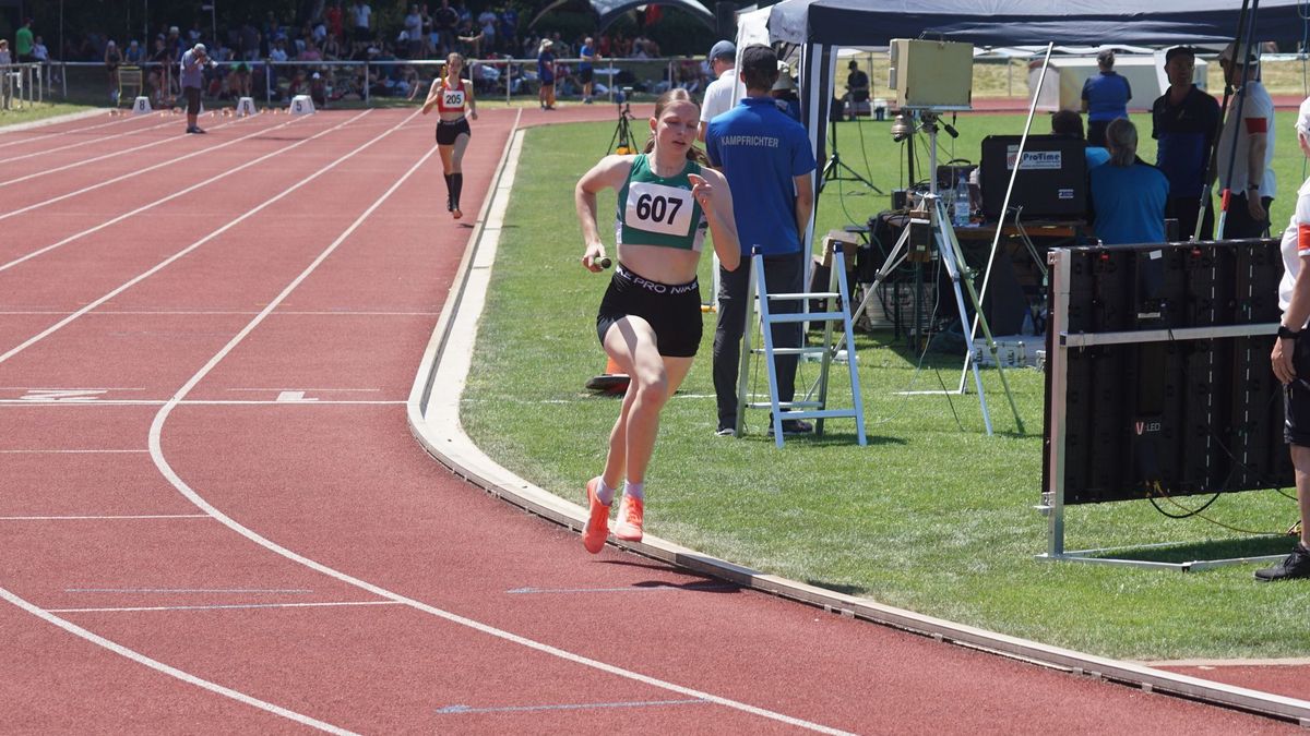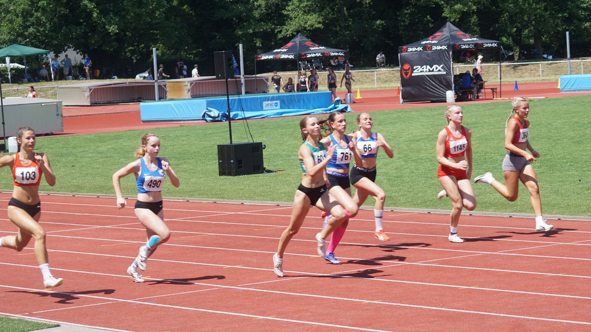 Es geht Schlag auf Schlag. Das Finale über 100m bei der W15 folgt kurz hinter dem Staffelrennen. Emma Röhrdanz holt hier in neuer persönlicher Bestzeit von 12,35 Sekunden den 3. Platz.
