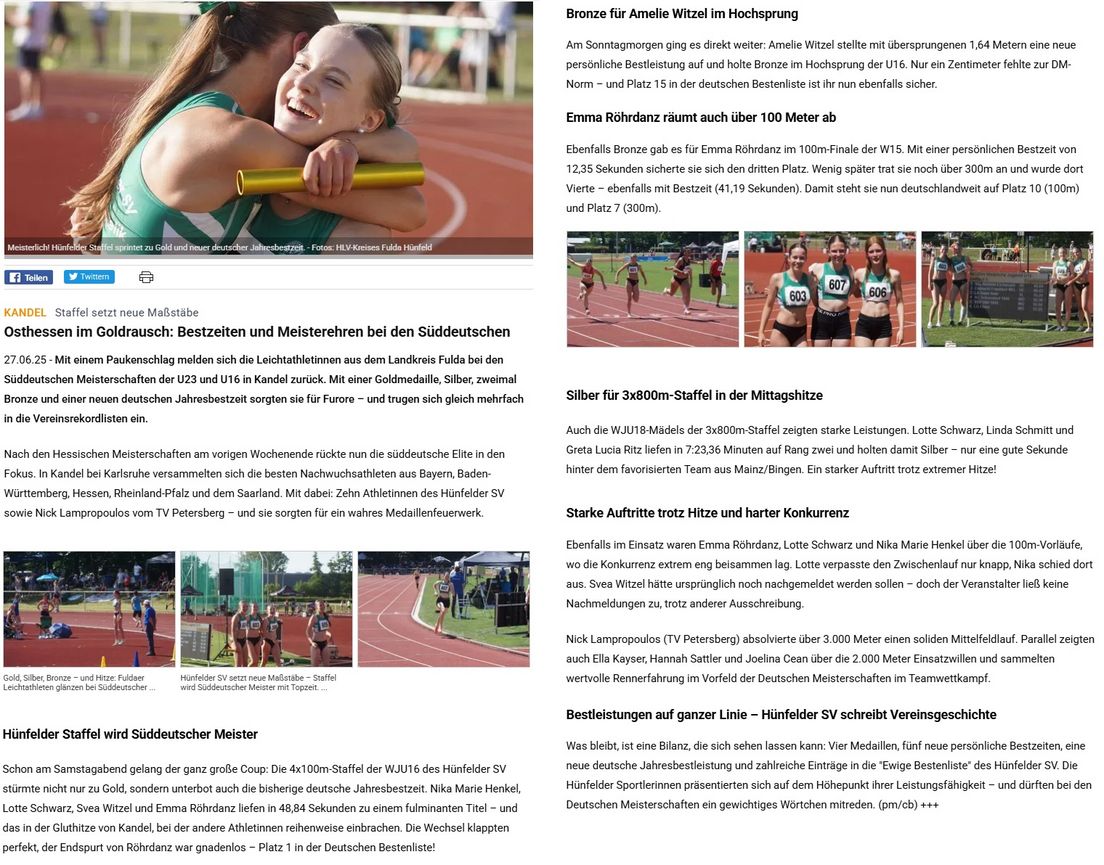 Alle vorstehend aufgezeigten Leistungen der Hünfelder Mädels alles neue Bestleistungen in der Ewigen Bestenliste des Hünfelder SV.
