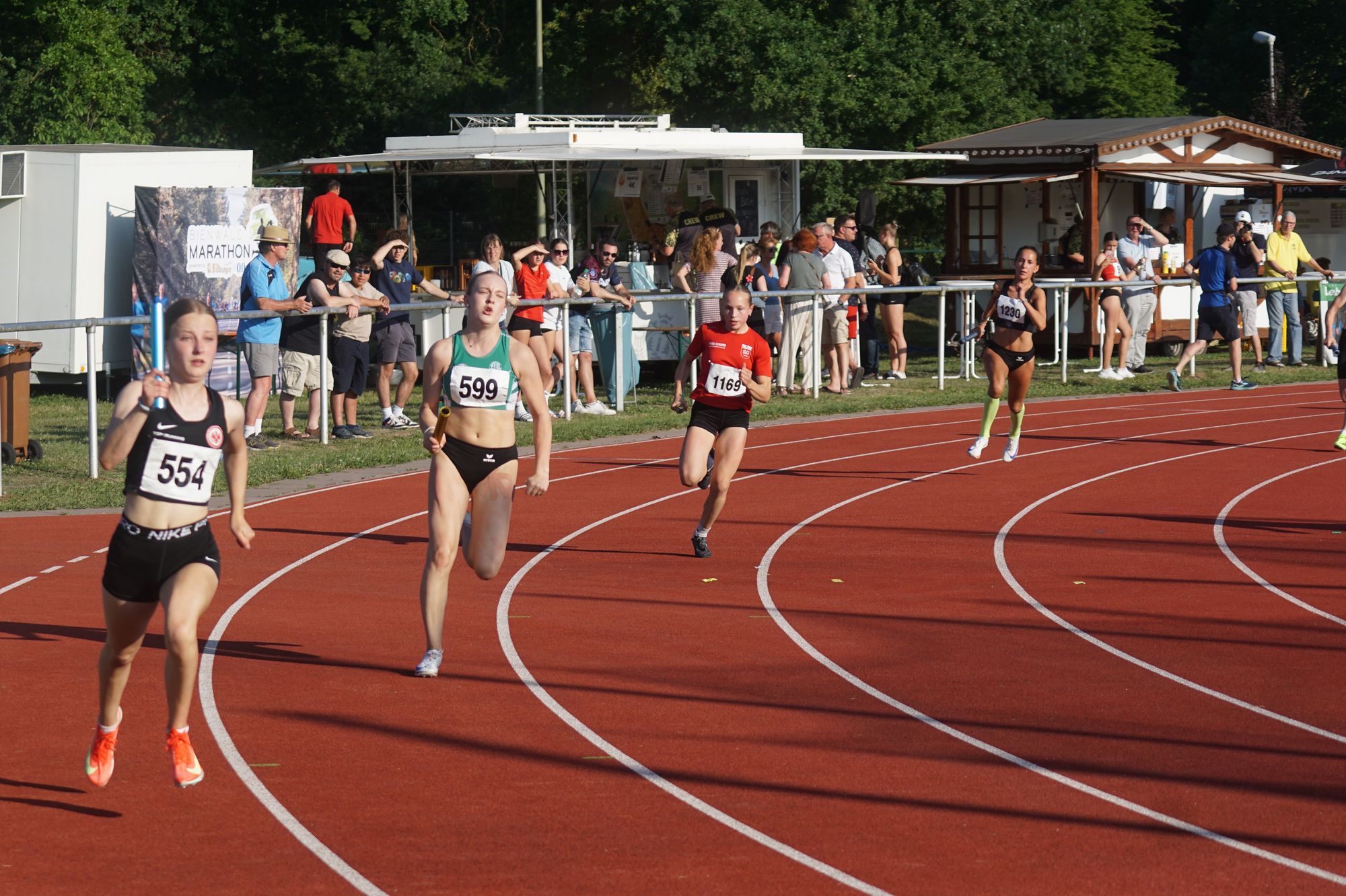 Los ging es am Samstagmittag mit dem Hürdenlauf. Emma Röhrdanz und Amelie Witzel waren hier gemeldet. Nach dem Vorlauf war für Beide auch schon Schluss. In den Vorläufen war der Gegenwind schon recht heftig, und damit hatten sowohl Emma als auch Amelie kräftig zu kämpfen. Eine Finalteilnahme war auch nicht erwartet worden. Aber Erfahrungen sammeln ist halt auch nicht zu unterschätzen!
