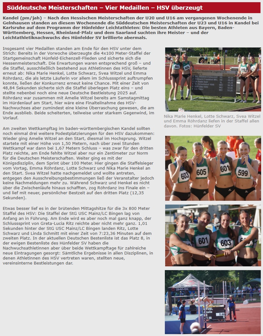 Süddeutsche Meisterschaft über 4x100m geholt und auf Platz 1 der Deutschen Bestenliste gelaufen