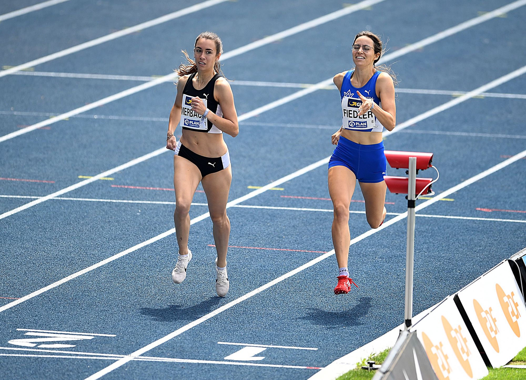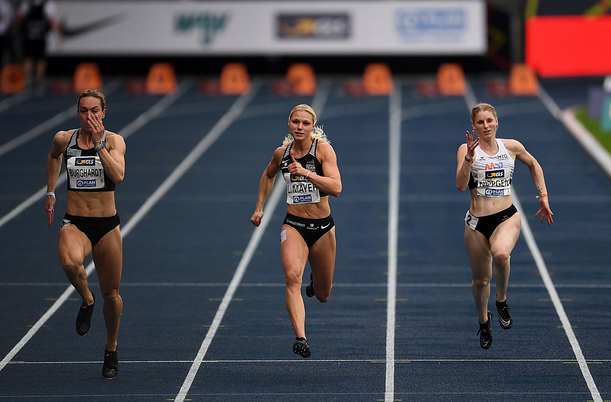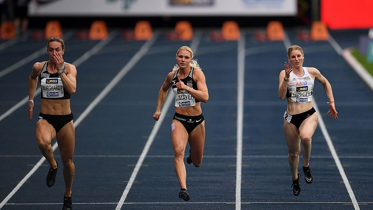 Mit vier Medaillen für die Leichtathleten aus Hessen endete der erste Tag der Deutschen Meisterschaften in Braunschweig. Es war kurz vor 20 Uhr, als die acht Sprinterinnen beim 100-Meter-Finale in den Startblock gingen. Und der Endlauf endete mit einer echten Überraschung. Hätte man im Vorfeld auf den Sieg von Alexandra Burghardt gesetzt, wäre ein satter Gewinn möglich gewesen. Die Athletin von der LG Gendorf Wacker Burghausen wuchs nach 11,36 Sekunden in der ersten Runde dann im Finale über sich hinaus. Mit hervorragenden 11,14 Sekunden (auch neue PB) holte sie nicht nur den Titel, sondern löste auch das Olympia-Ticket für Tokio. Auf den beiden nächsten Plätzen folgte ein Duo vom Sprintteam Wetzlar. Lisa Mayer präsentierte sich Siegerin ihres Vorlaufes mit 11,27 Sekunden. Die gleiche Zeit, die sie letzte Woche beim Team-Europacup in Chorzow gelaufen war. In Braunschweig zeigte die Uhr für Lisa jetzt sehr gute 11,16 Sekunden an, was DM-Silber bedeutete. Vereinskollegin Rebekka Haase (im Vorjahr Vizemeisterin) hatte als Dritte mit 11,32 Sekunden bereits einen größeren Rückstand.