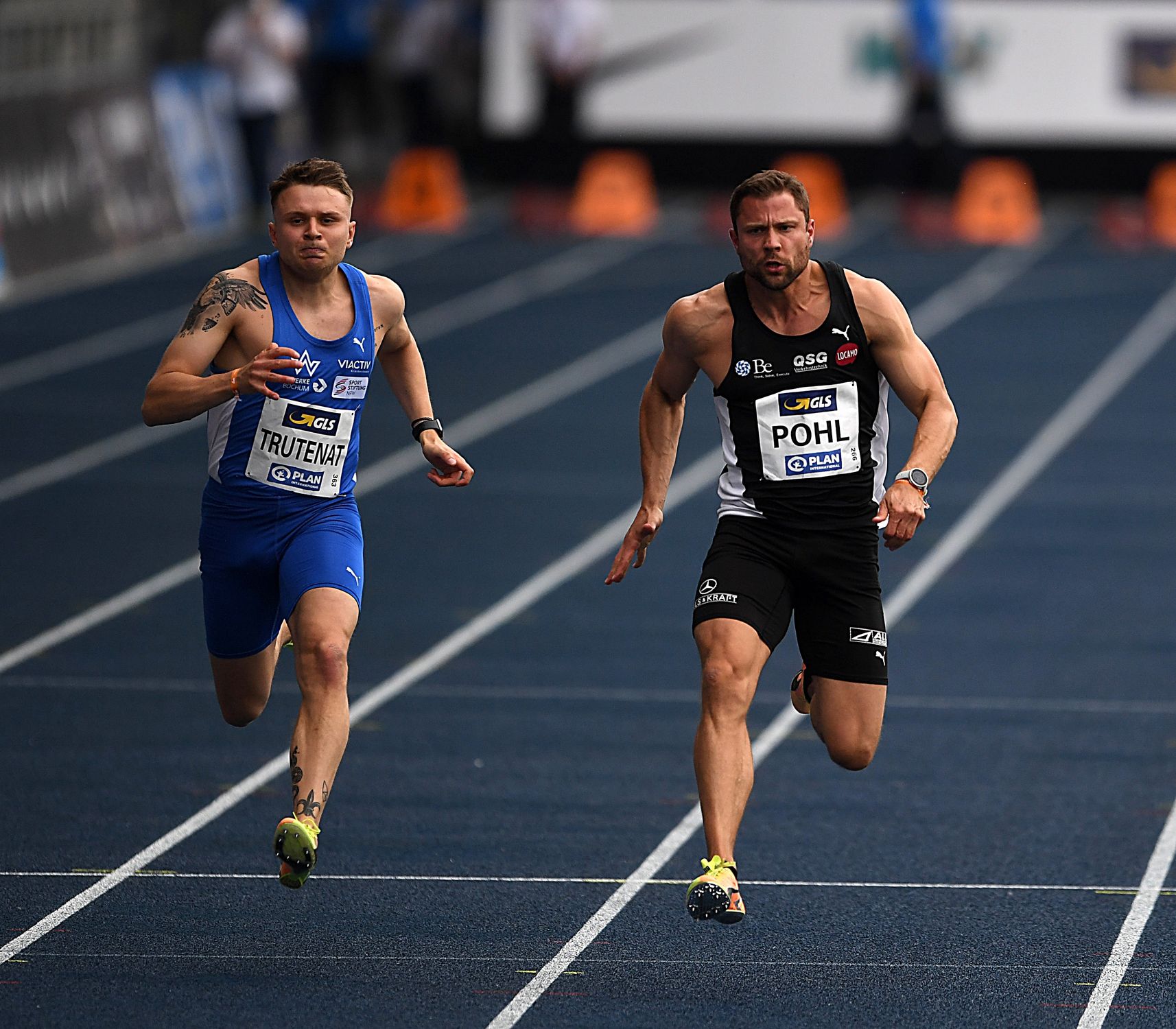 Bei den schnellen Jungs war diesmal nur ein Hesse mit von der Partie. Michael Pohl (Sprintteam Wetzlar) reiste mit 10,33 Sekunden als Zehnter der Meldeliste an. Die Endlaufteilnahme war also keinesfalls garantiert und die Wiederholung des fünften Platzes aus dem Vorjahr eher offen. Das Thema Finale war für Pohl nach seinem zweiten Platz im Vorlauf (also direkte Qualifikation) in trockenen Tüchern. Über die Zeitregel hätten die 10,49 Sekunden nicht gereicht. Im letzten Wettbewerb des ersten Tages setzten sich zwei Youngster durch. Marvin Schulte (SC DHfK Leipzig) hatte in einem Wimpernschlag-Finale mit 10,19 Sekunden (SB) hauchdünn gegen Lucas Ansah-Peprah (Hamburger SV/Bestzeit mit 10,20 sec.) durch. Michael Pohl wiederholte seinen fünften Platz und lief mit 10,35 Sekunden (SB) auf die hundertstel Sekunde die identische Zeit wie 2020.
