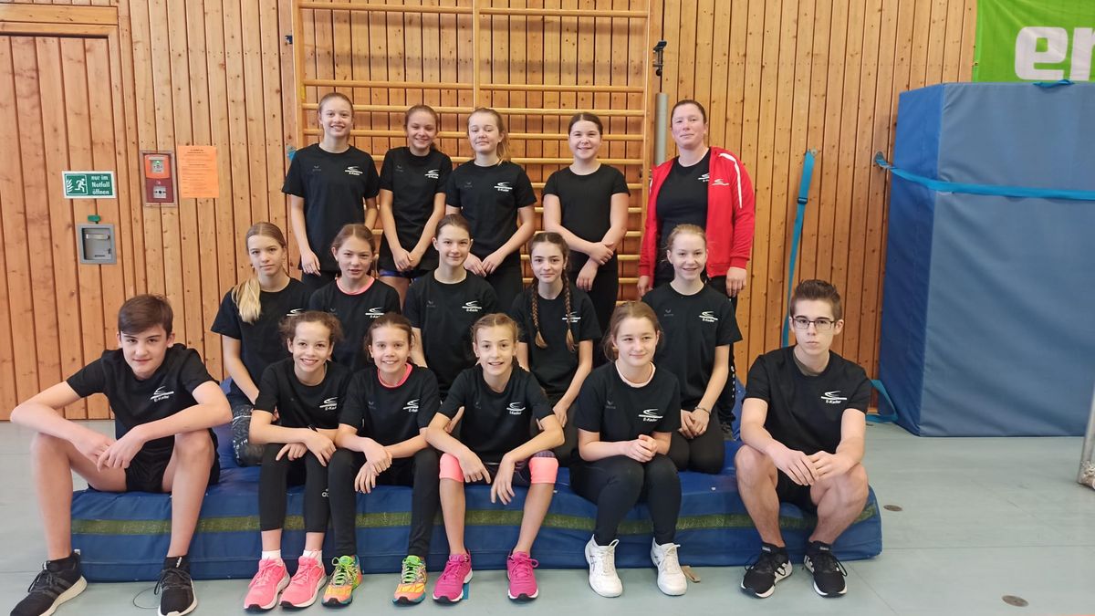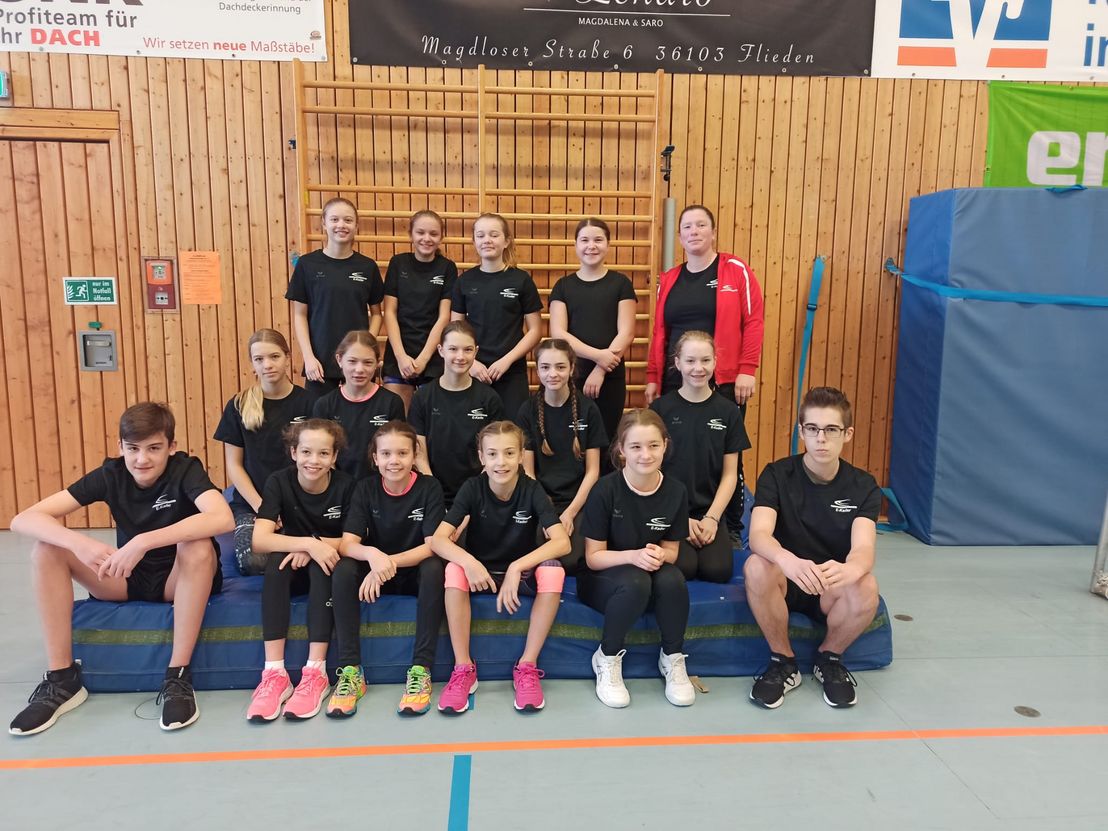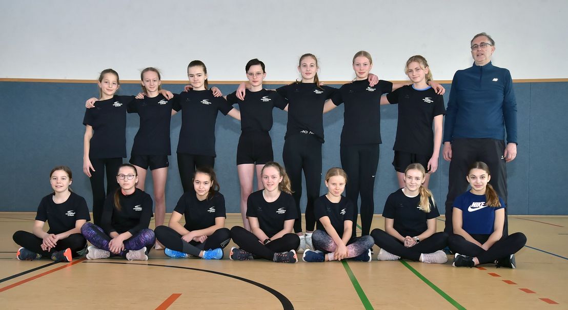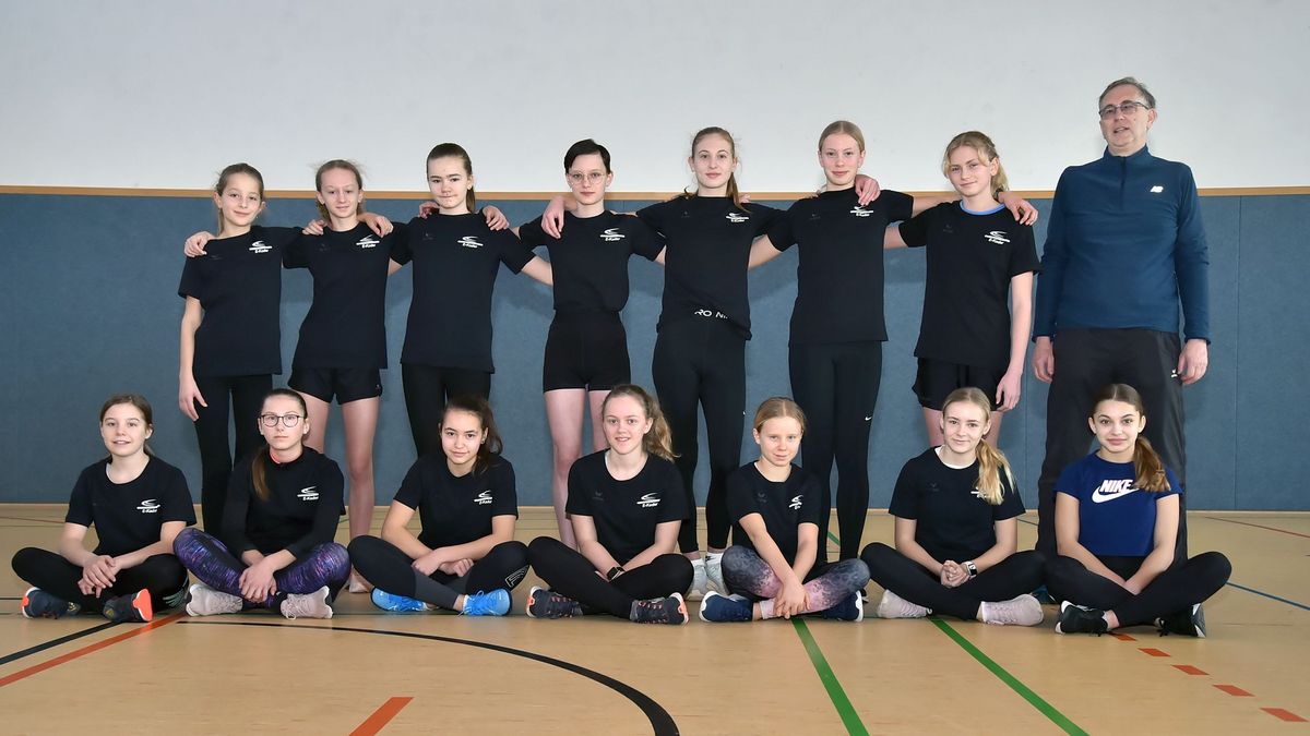 Hintere Reihe: Amelie Witzel, Fenja Klein, Alison Krause, Greta-Lucia Ritz, Alicia Kraus, Annika Rohm, Emma Schenk, Rainer Hahn