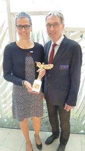 Tatjana Schilling vom TSV Korbach ist in Lausanne (Schweiz) als Senioren-Leichtathletin des Jahres 2016 geehrt worden. In den Räumlichkeiten des Europäischen Senioren-Dachverbands (EMA) wurde der Athletin aus Nordhessen von EMA-Präsident Kurt Kaschke (Deutschland) und Vizepräsident Jerzey Krauze (Polen) die Trophäe „Fighting Nike“ überreicht. Der Preis ist knapp drei Kilogramm schwer - und sorgte vor dem Rückflug bei der Sicherheitskontrolle am Genfer Flughafen für einige Verwirrung. Denn als sich „Fighting Nike“ im Handgepäck langsam durch den Scanner bewegte, hatten mehrere Polizisten einige Fragen. Letztlich sorgte der Bundesadler auf dem Rucksack für die entsprechende Glaubwürdigkeit in der Argumentation. „Es war ein unvergessliches Wochenende und ein tolles Gefühl, diesen Preis entgegennehmen zu dürfen“, sagt Tatjana Schilling, deren Tochter Alicia bei der Reise dabei war. Das Programm mit Ehrung, Dinner, Besichtigung des Olympischen Museums und Stadtbummel war dicht gedrängt - nur die geplante Bootsfahrt auf dem Genfer See fiel aufgrund von starkem Regen aus.<ENDE/>