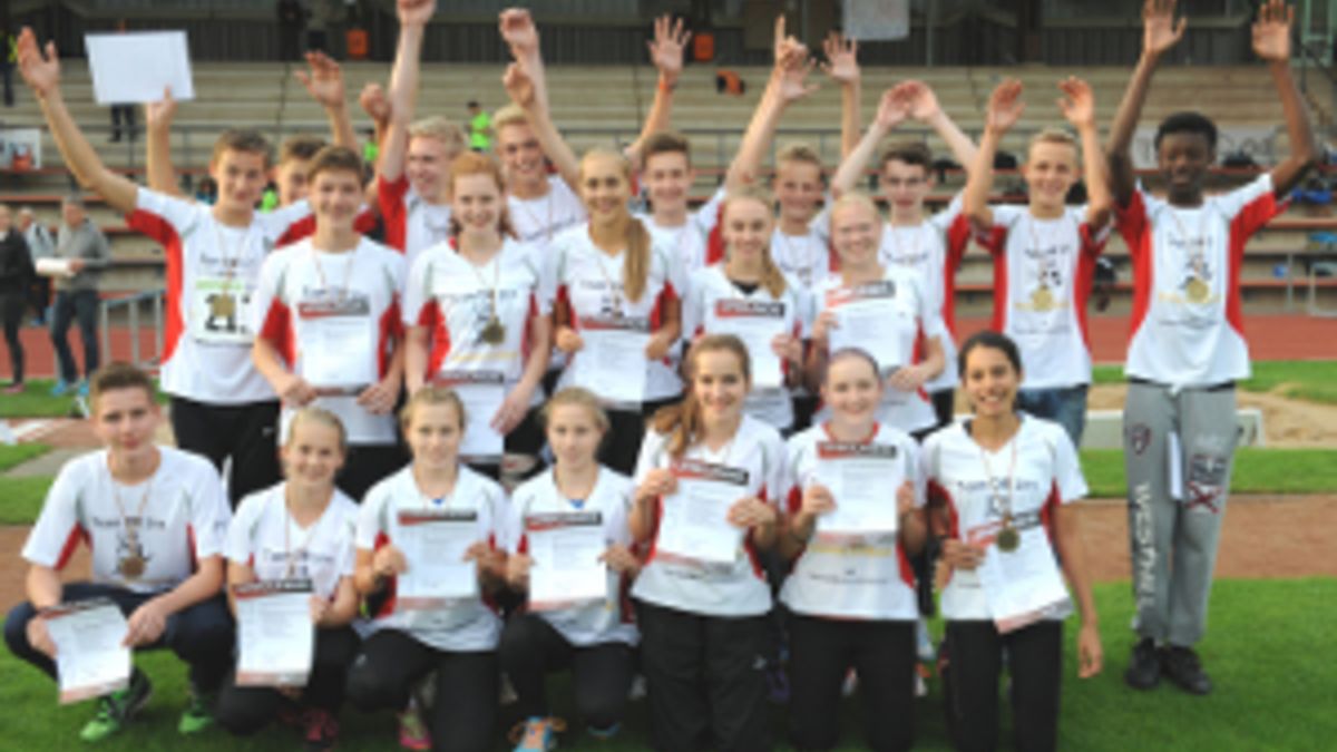 Vor einem Jahr die LG Eintracht Frankfurt, dieses Mal die Startgemeinschaften Darmstadt/Weilmünster/Gelnhausen in der U16 und Darmstadt/Rimbach/Kirchhain in der U20. Bei den deutschen Jugend-Team-Meisterschaften in den Altersklassen U16/U20 haben in diesem Jahr zwei hessische Startgemeinschaften den dritten Platz belegt. In Leverkusen lagen in der U16 nur die zum vierten Mal in Folge siegreiche Startgemeinschaft mit dem gewöhnungsbedürftigen Namen ART/SFD/TBH Düsseldorf (201 Punkte) und die Leverkusener Gastgeber (179) vor den Hessen, die insgesamt 148 Zähler sammelten und in den Einzeldisziplinen insgesamt acht zweite Plätze verzeichneten.<ENDE/> Allein viermal Zweiter wurde Felix Bornhofen (ASC Darmstadt), und zwar im Hochsprung (1,88 Meter), Weitsprung (6,22), über 80 Meter Hürden (10,89 Sekunden) und mit der 4x100-Meter-Staffel (45,37 Sekunden). Das gleiche galt für die Darmstädter Lars Hinüber über 800 Meter (2:05,80 Minuten) und Julia Fenn im Kugelstoßen (12,19 Meter) sowie vom TV Gelnhausen Martin Kratz mit dem Diskus (45,74) und Janis Hammel mit der Kugel (15,19 Meter). Die LG Eintracht Frankfurt (88 Punkte) belegte Rang neun von insgesamt zehn Mannschaften.