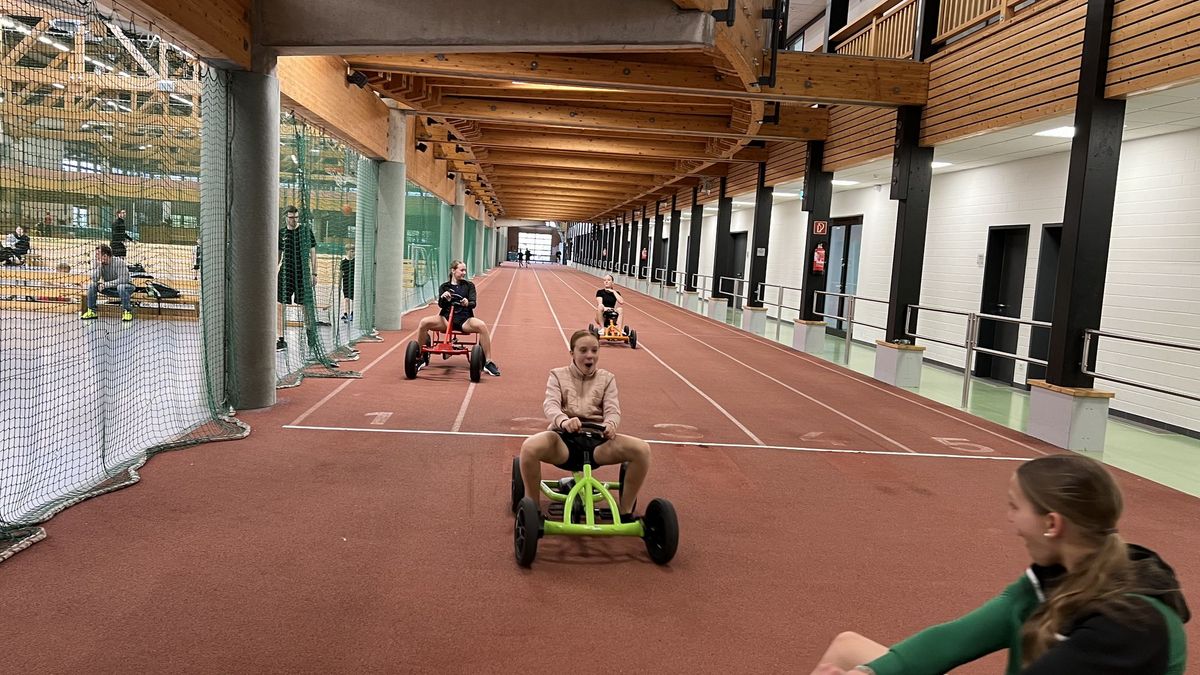 Sportlich gab es: Sprint, Mittelstrecke, Staffel, Hoch, Weit, Kugel, Diskus, Speer, Ball, Yoga, Kraft- und Stabitraining, …, je nach Wetterlage drinnen oder draußen. Dem „Nixdorf“ sei Dank für diese tollen Möglichkeiten!