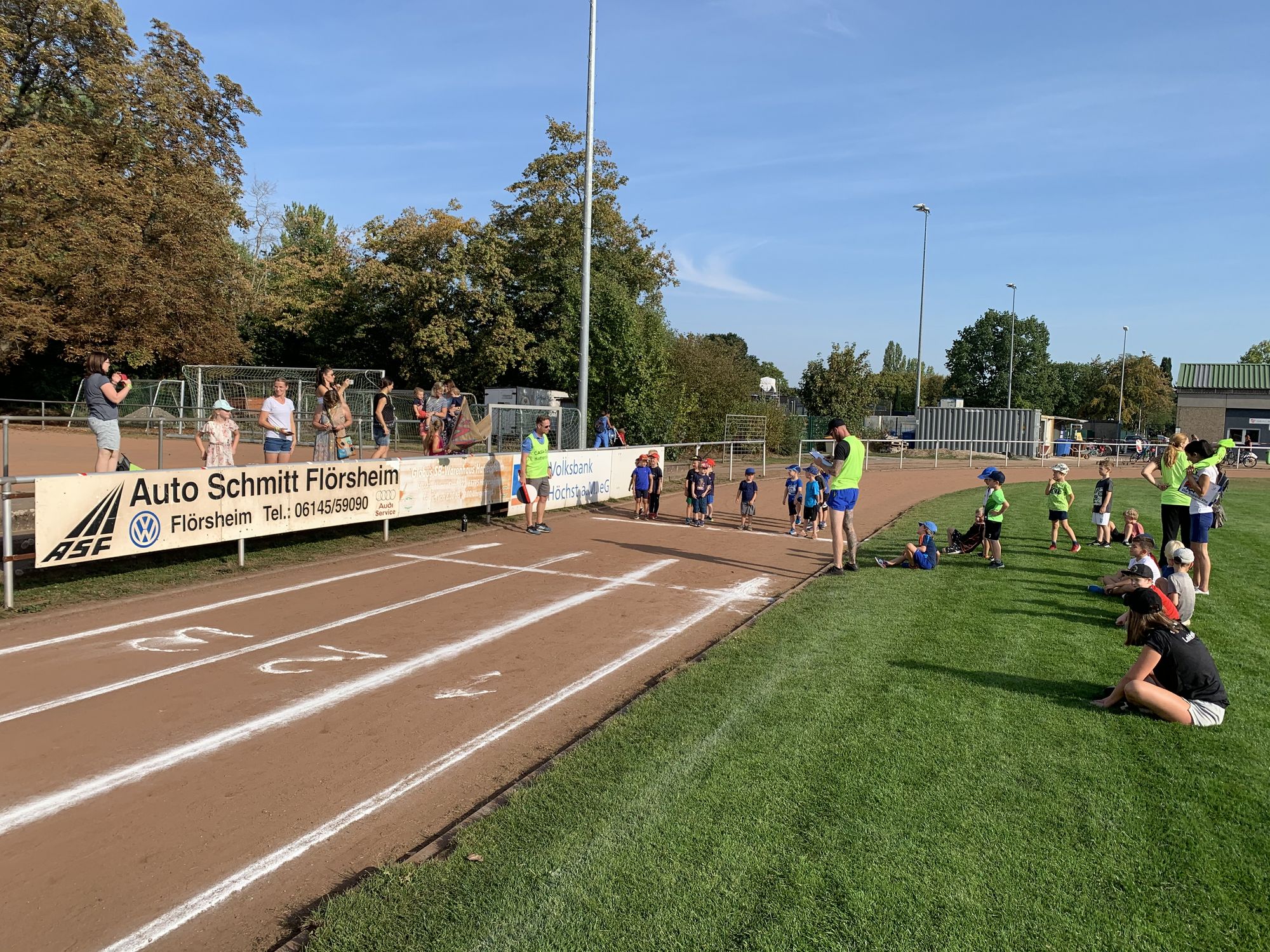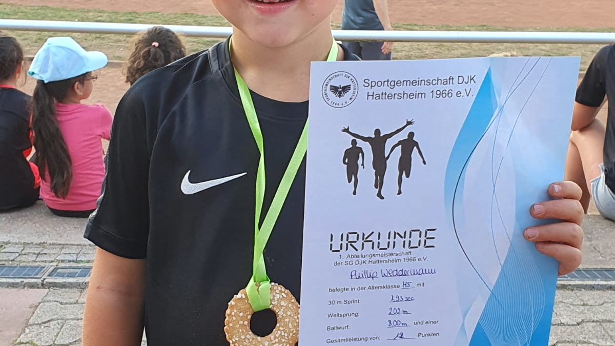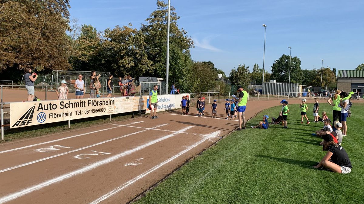 Den letzten Teil der Reihe stellte der Abschlusswettkampf dar. Dieser fand, für diese Zeit ganz klassisch, in der Late Season am 14. September bei strahlendem Sonnenschein auf dem Sportgelände des Vereins statt. Im Vorfeld wurde in vertrauensvoller und konstruktiver Zusammenarbeit mit der Stadt Hattersheim gemeinsam ein Hygienekonzept entwickelt. Die Resonanz auf den geplanten Wettkampf war groß. Im Vorfeld wurden, neben den Kindern, auch Geschwister, Eltern und Großeltern eingeladen. „Aber irgendwann zeigte meine Excelliste mehr als 300 Personen“, erinnert sich Maier. „Und als dann nach der finalen Version des Hygienekonzepts feststand, dass lediglich maximal 150 Personen für die Veranstaltung zugelassen werden, musste ich leider einigen Leuten aus dem Umfeld der Kinder wieder absagen.“ Letztlich gingen insgesamt 82 Kinder an den Start (28 aus der U6, 34 aus der U8 und 20 aus der U10). Alle Absolventen bekamen eine Urkunde und ein fluoreszierendes Armband mit der Aufschrift „Flotter Hüpfe – SG DJK Hattersheim". „Alle Kinder trugen dann ganz stolz ihre Armbänder, erzählten davon zu Hause und im Kindergarten und machten damit richtig Werbung für unseren Verein und die Sportart Leichtathletik“, berichtet Maier.