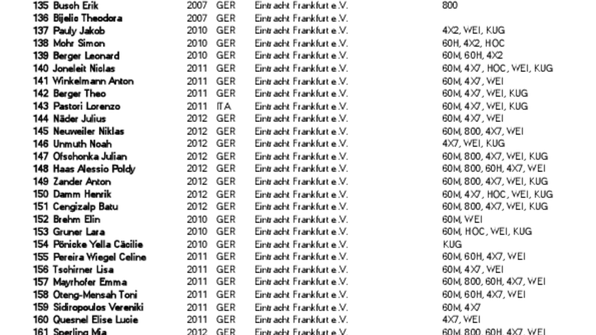 Teilnehmerliste 43 Kreishallenmeisteschaften