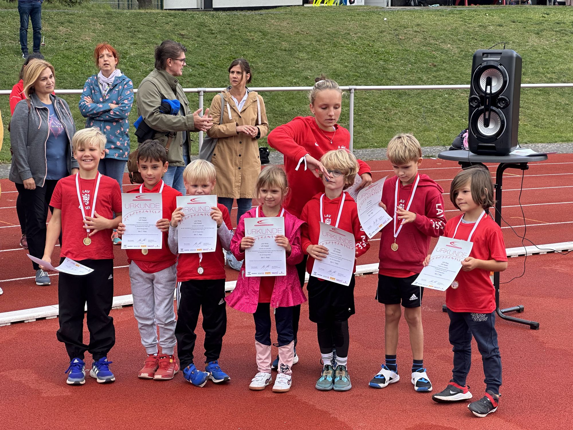 Auch in der Altersklasse U10 wurde um jeden Zentimeter und jede Sekunde gekämpft. Die jungen Sportlerinnen und Sportler zeigten großartige Leistungen und sorgten für spannende Wettkämpfe. Besonders beeindruckend war die Hindernis-Sprintstaffel, bei denen die Kinder ihr Tempo und ihre Schnelligkeit unter Beweis stellten. Abgerundet wurde hier der Wettkampf mit dem Weitsprung in die Zone. Die Siegerteams waren die SSC Vellmar, vor der LAV Kassel und dem KSV Baunatal.