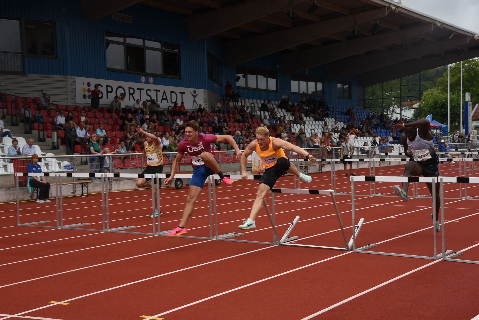 Am Wochenende traf sich die große Leichtathletik -Familie im Marburger Georg-Gassmann-Stadion, wo die besten Zehnkämpfer und Siebenkämpferinnen beim Thorpe Cup, dem Ländervergleich Deutschland gegen die USA, an den Start gingen. Jedes Leichtathletikherz schlug höher beim Anblick der Könige der Leichtathleten. Wo kann man in der Region schon einmal Spitzenleichtathletik zum Anfassen und das auch noch kostenlos erleben. Bereits zum 5. Mal war die Universitätsstadt Austragungsort und die Zuschauer*innen auf der voll besetzten Haupttribüne waren begeistert. Egal, ob beim 100-Meter-Sprint oder beim 100-Meter-Hürden-Lauf der Siebenkämpferinnen, das fachkundige Publikum tobte. Rhythmisches Klatschen trieb die Weitspringer zu Höchstleistungen an. Am ersten Tag sorgte mit einer besonderen Flugshow Felix Wolter (TSV Gräfelfing ) mit dem ersten Acht-Meter-Sprung (8.01 m) seiner Karriere für ein besonderes Highlight. Der 26-Jährige wusste aber auch im Hochsprung mit überfloppten 2,02 Metern und über die Stadionrunde mit 47,16 Sekunden mit überragenden Leistungen zu überzeugen.