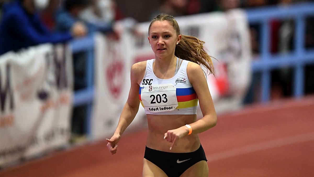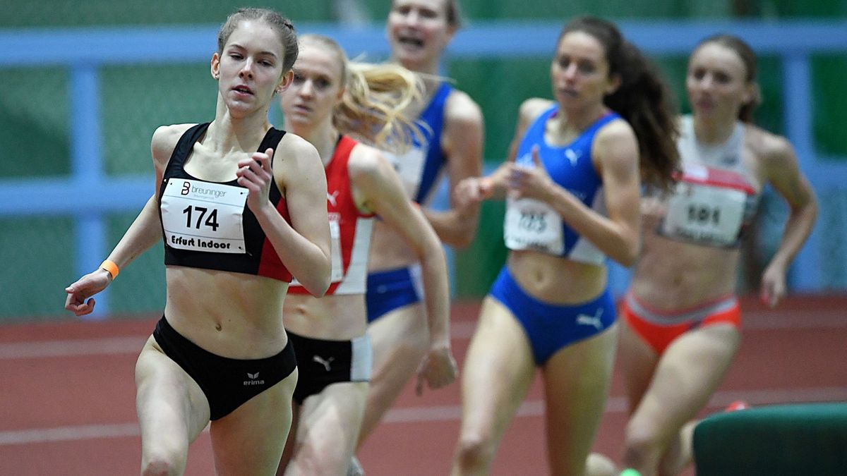Absolut beeindruckend war auch der Auftritt von Jana Becker im B-Lauf über 800 Meter. Die Mittelstrecklerin im Trikot der LG Wettenberg befindet sich in ihrem ersten B-Jugendjahr und schnappte sich in der neuen Hallenbestzeit von 2:08,16 Minuten den Sieg. Damit ist sie aktuell bundesweit die Nummer zwei bei in der älteren U20 und hat in Sindelfingen ebenfalls eine Medaille fest im Visier. Der zweite Platz in Erfurt ging durch Sophia Volkmer ebenfalls nach Hessen, sie gehört jedoch bereits der U23 an und wurde mit 2:09,20 Minuten gestoppt. Sarah Köcher (LG Odenwald/noch U18) zeigte im C-Lauf solide 2:17,59 Minuten (3.).