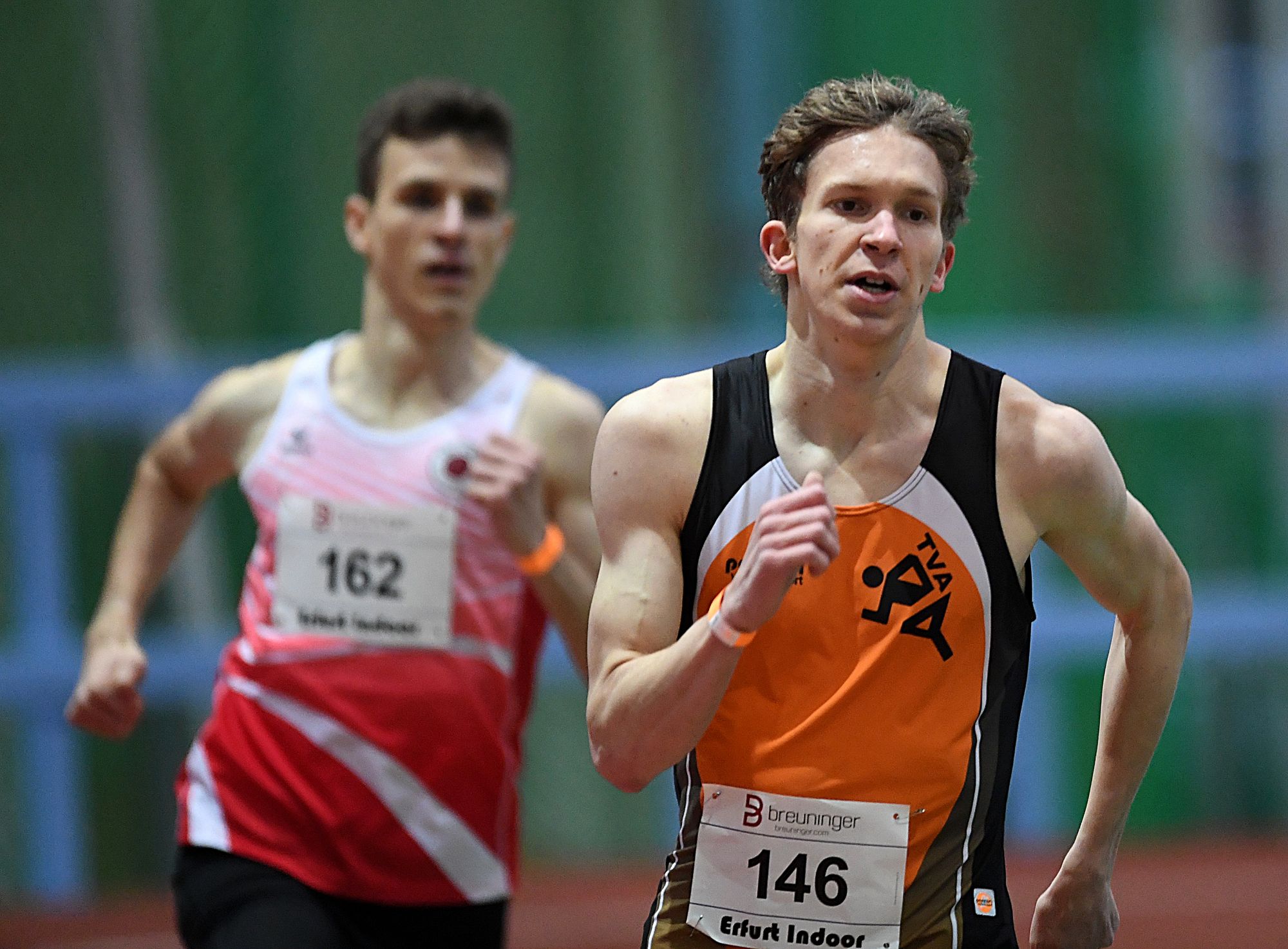 Für den Eintrachtler Marc Reuther ist Erfurt scheinbar ein gutes Pflaster, holte er sich hier seinen bereits dritten 800-Meter-Sieg in Folge. Diesmal waren es flotte 1:46,47 Minuten. Als Zweiter überraschte Hindernis-Spezialist Karl Bebendorf (Dresdner SC/1:47,18 min.). Oskar Schwarzer (TV Groß-Gerau/U23), der amtierende deutsche Hallenmeister, wurde nach 1:49,16 Minuten Dritter.