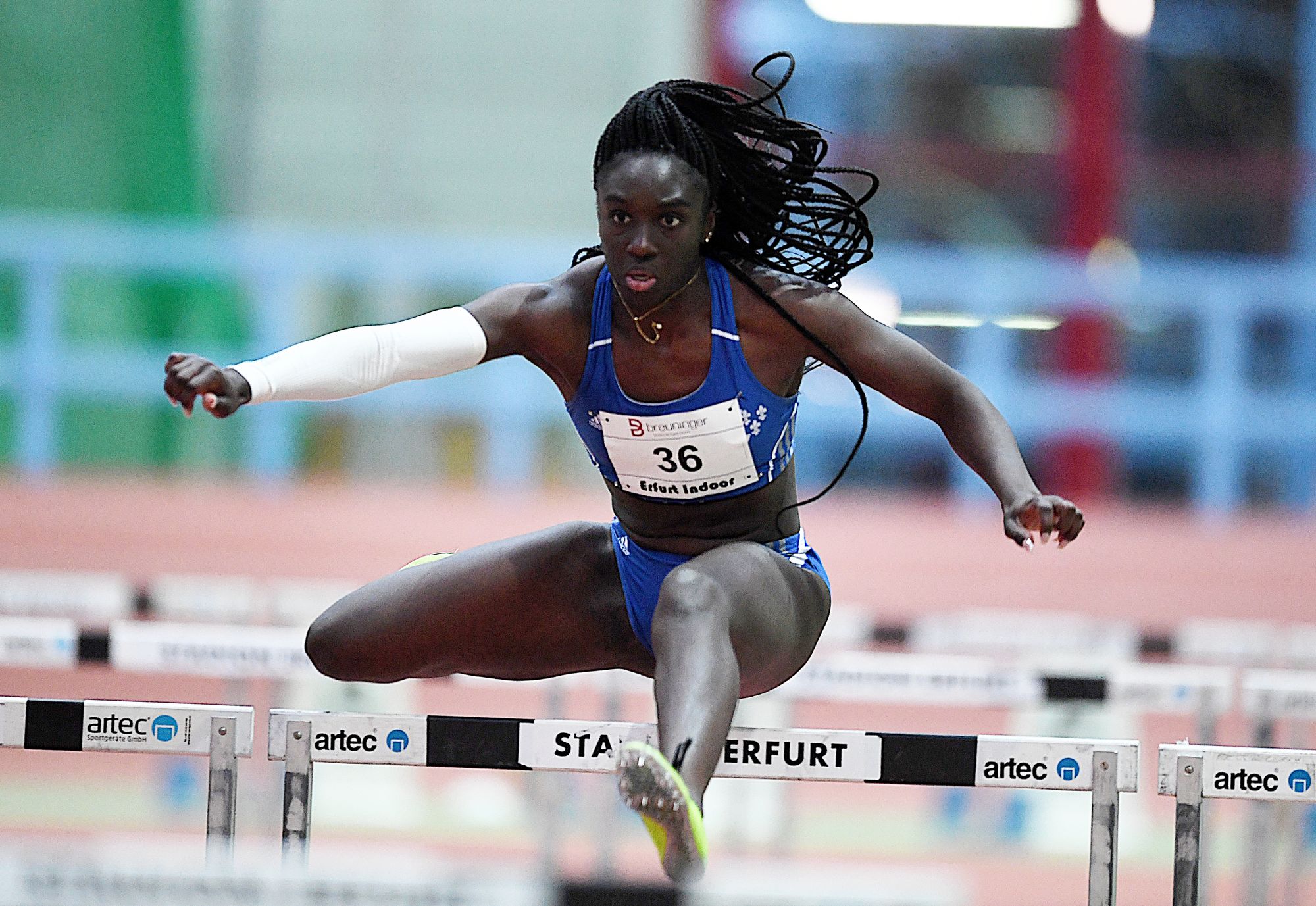 Bereits bei den hessischen Hallen-Meisterschaften (U20) in Hanau hatte Hawa Jallow mit dem Titelgewinn in starken 8,41 Sekunden über die 60 Meter Hürden gezeigt, dass sie richtig gut drauf ist und für Sindelfingen zu den Anwärterinnen auf Edelmetall gehört. Bei der neunten Auflage des internationalen Meetings in der Hartwig-Gauder-Halle ging die Athletin vom Wiesbadener LV gegen Konkurrentinnen ganz anderen Kalibers in den Startblock. Ihren Vorlauf bestritt Hawa mit Anne Weigold (LG Mittweida), die in Erfurt gleich zweimal die Norm für die Hallen-WM unterbot. In der ersten Runde stürmte Jalloh in der neuen Bestzeit von 8,29 Sekunden hinter der siegreichen Sächsin Weigold (8,12 sec.) als Zweite über die Ziellinie und machte damit problemlos die Finalteilnahme klar. Dort ging der Sieg erwartungsgemäß an Anne Weigold (8,13 sec.), die sich gegen Monika Zapalska (TV Wattenscheid/8,18 sec.) durchsetzte. Hawa konnte sich erneut steigern und rückte als Vierte mit hervorragenden 8,24 Sekunden „Altmeisterin“ Cindy Roleder (SV Halle) auf die Pelle, die lediglich 0,03 Sekunden Vorsprung hatte.