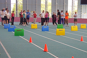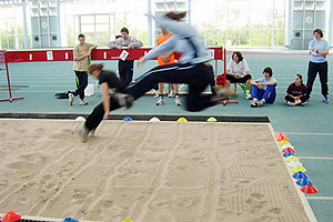 Am vergangenen Wochenende fand in der Leichtathletikhalle in Frankfurt-Kalbach eine Ausbildungsveranstaltung des Hessischen Leichtathletik-Verbandes statt. Mit 31 Teilnehmern konnten so weitere Trainerassistenten für den Bereich des Grundlagen-trainings ausgebildet werden. Einige der Teilnehmer absolvierten den zweitägigen Lehrgang als wichtigen Bestandteil der diesjährigen C-Trainer-Breitensport-Ausbildung. Während vor der Halle die Sonne strahlte, strahlten auch die Gesichter der beiden eingespielten Referenten Yvonne Ripper und Dominic Ullrich, über so viel Engagement und Begeisterungsfähigkeit der Teilnehmer in den angebotenen Theorie- und Praxisteilen der Ausbildung. „Wir möchten neue Impulse für den Trainings- und Wettkampfalltag vermitteln, um so die Interessen und Notwendigkeiten von Kindern und Jugendlichen stärker zu berücksichtigen“, beschreibt Ullrich, der so mit der gebotenen Veranstaltung Wege von der Kinderleichtathletik zur Talentförderung aufzeigen möchte. Dies ist ganz im Sinne der Projektgruppe „Kinder in der Leichtathletik“ des Deutschen Leichtathletik-Verbandes, in der er seit fünf Jahren bundesweit engagiert mitarbeitet. „Durch qualifizierte Ausbildung unserer Trainer erreichen wir auch die Kinder und Jugendlichen in den Vereinen“, erklärt Yvonne Ripper, die auch seit kurzem Jugendwartin des HLV ist. Sie unterstreicht damit auch ihren motivierten Einsatz für die Jugendlichen innerhalb unseres Landesverbandes. Yvonne Ripper & Dominic Ullrich, 28. April 2008