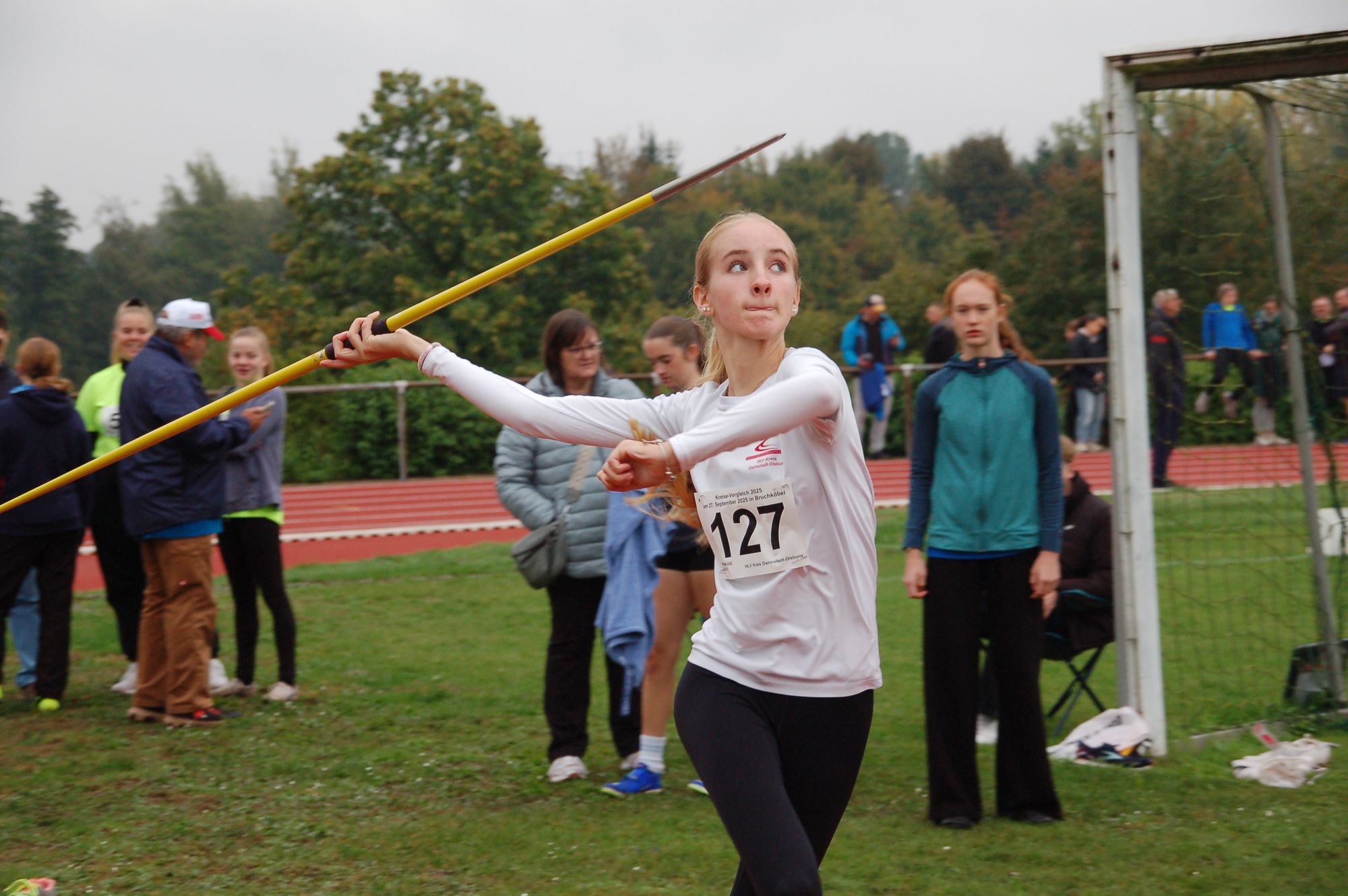 Am 27.09.25 war es wieder so weit. Der alljährige Kreisvergleich in Bruchköbel stand an. Das Wetter war uns dieses Jahr gewogen und es fiel kein einziger Tropfen Regen. Der Kreis Darmstadt-Dieburg trat gegen 8 andere hessische Kreise an und konnte an diesem Samstag mit sehr guten Leistungen glänzen. Es ist gelungen den Gesamtsieg - und das im dritten Jahr in Folge - zu holen. Mit einer Gesamtpunktzahl von 1021 war die Freude bei allen Athleten, Trainern und Betreuern der Mannschaft groß, als der Gesamtsieg verkündet wurde. Darmstadt-Dieburg konnte sich in den Altersklassen WJU16, WJU14 und der MJU14 gegen die Konkurrenz durchsetzen und dort auch die Altersklassenteamwertung gewinnen.
