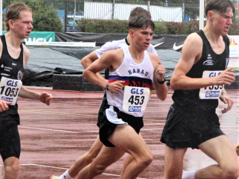 Ebenfalls Sechster wurde Paul Fecher im 1500-Meter-Lauf der männlichen Jugend U20. Bei seinem ersten Meisterschaftsstart im Trikot des SSC Hanau-Rodenbach machte der Gymnasiast alles richtig, hielt taktisch klug jederzeit Anschluss zur Spitze und spurtete mit einer 60-Sekunden-Schlussrunde zur neuen persönlichen Bestzeit von 3:56,23 Minuten und in die Urkundenränge. “Ziel war die Endlauf-Teilnahme und eine Top-ten-Platzierung – jetzt ist es mit Rang sechs das Optimum geworden”, freute sich der im Winter und Frühling lange durch Verletzungen und Krankheiten gebremste SSC-Nachwuchsläufer.