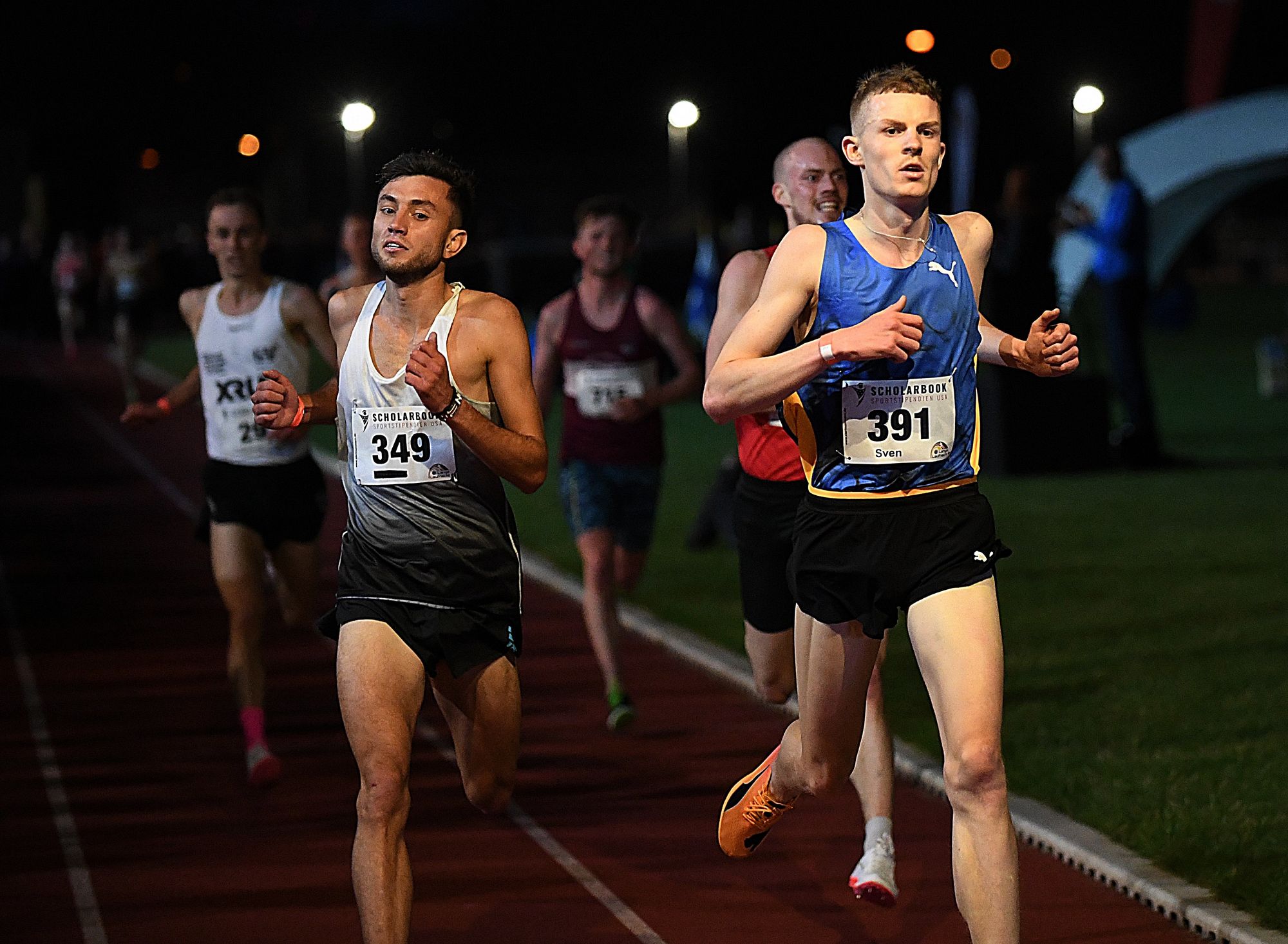 Ein paar Zahlen gefällig? Weit über 500 Teilnehmer aus 164 Vereinen und 30 Nationen verteilt auf knapp 50 Rennen über 800 Meter, 1500 Meter, 3000 Meter Hindernis sowie 5000 Meter findet man nirgendwo in Deutschland. Bei den Männern wurden über 800 Meter elf Rennen gestartet, über 1500 Meter zehn. Alle mit erfahrenen Tempomachern, damit möglichst viele Teilnehmer eine Bestzeit erreichen oder eine der vielen Normen für nationale oder internationale Aufgaben erfüllen können. Zudem gehörte das Meeting erstmals zur „World Athletics Continental Tour“, womit hier wertvolle Zähler fürs World-Ranking erworben werden konnten. Auch die Hessen waren mit vielen Aktiven dabei und konnten eine ganz Reihe von Spitzenleistungen bejubeln. Die Uhr zeigte schon 21:45 an, als der A-Lauf über 5000 Meter gestartet wurde. Nach flotten 13:33,05 Minuten gab es einen neuen Meeting-Rekord durch Tom Mortimer. Der Brite löste damit problemlos Ahmed el Ami Tarig (RSA) ab, der vor vier Jahren 13:40,80 Minute markiert hatte. Ein tolles Rennen lieferte Sven Wagner (Königsteiner LV) ab, der noch der U23 angehört. Wagner ist eigentlich 1500-Meter-Spezialist. Er „kann“ es aber auch über die 5000 Meter, was er mit einer starken Schlussrunde eindrucksvoll unter Beweis stellte. Er sammelte noch einige Gegner ein, unterbot mit 13:51,06 Minuten die Norm für die U23 Europameisterschaften in Finnland, war bester Deutscher und setzte sich an die Spitze der deutschen Jahresbestenliste seiner Klasse. Kilian Schreiner (ASC Breidenbach) beendete den A-Lauf nach 14:17,92 Minuten (22.). Weitere Resultate: 41. Patrick Andres (LG Bischoffsheim/Ginsheim) 14:41,42 Minuten, 72. Fabian Sposato 15:33,21, 86. David Johnson (beide SSC Hanau-Rodenbach) 16:03,27.