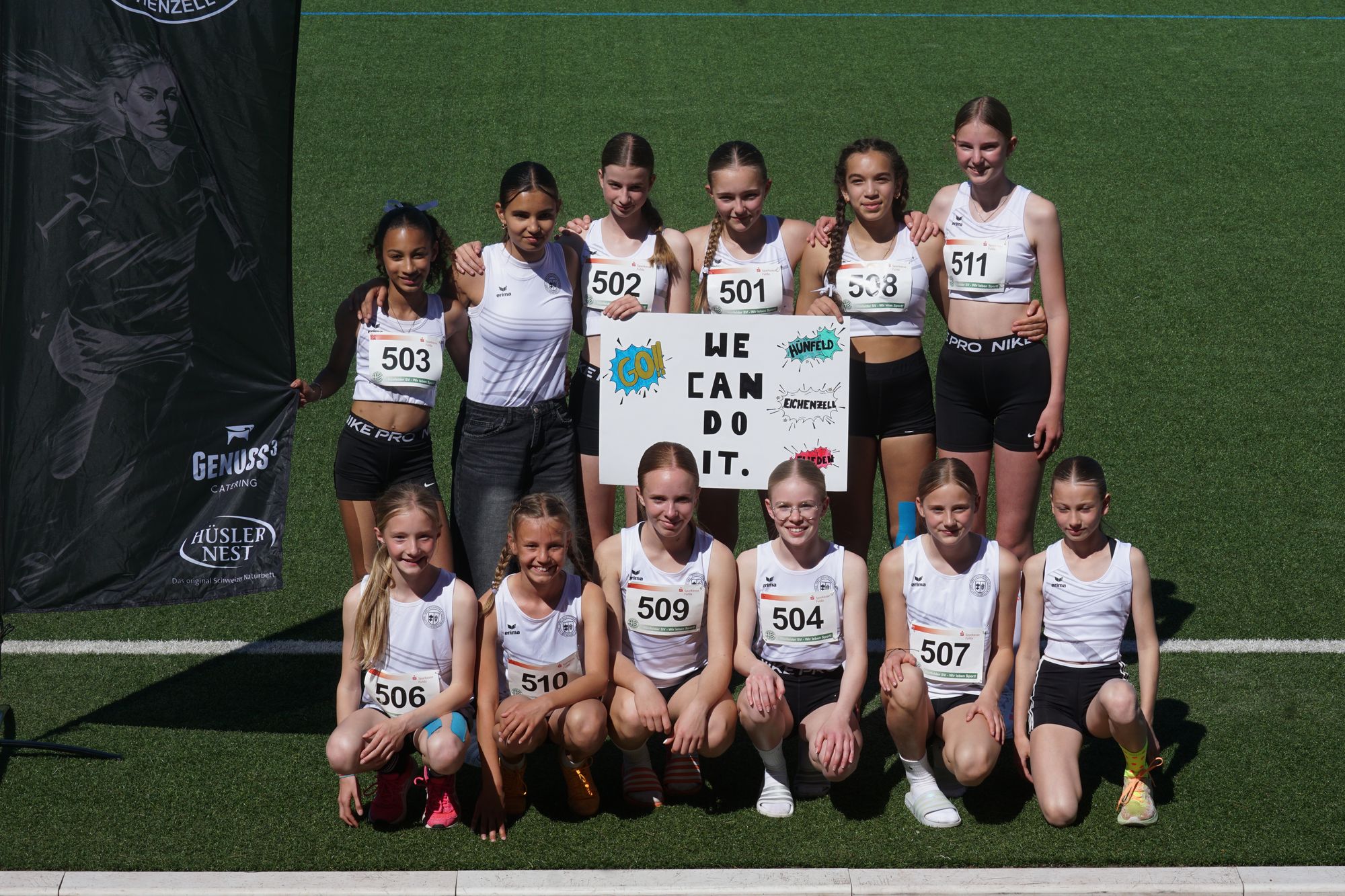 2023 haben die Mädels der StG Hünfeld-Neuhof-Flieden, 2024 die Mädels der StG Fulda-Eichenzell die Hessenmeisterschaft nach Osthessen geholt. In diesem Jahr ist wie bei den U16-Mädels auch bei der U14 die StG Hünfeld-Eichenzell-Flieden am Start. Und die U14-Mädels wollen es den U16-Mädels nachmachen, ebenfalls die Hessenmeisterschaft 2025 holen. Und die Voraussetzungen könnten kaum besser sein. In der Qualifikation erreichte die StG Hünfeld-Eichenzell-Flieden 7.188 Punkte. Das zweitplatzierte Team der StG Marburg-Kirchhain kam auf 6.569 Punkte. Gut 600 Punkte mehr sind schon eine kleine Welt. Welche Qualität in der StG steckt lässt sich u.a. auch daran sehen, dass die 4x75m-Staffel der WJU14 in diesem Jahr auf Platz 1 der „Ewigen Bestenliste“ des Hessischen Leichtathletik-Verbandes gelaufen ist. Aber abgerechnet wird bekanntlich am Ende eines Wettkampfs, da heißt es konzentriert in den Wettkampf geben und möglichst viele Punkte holen!