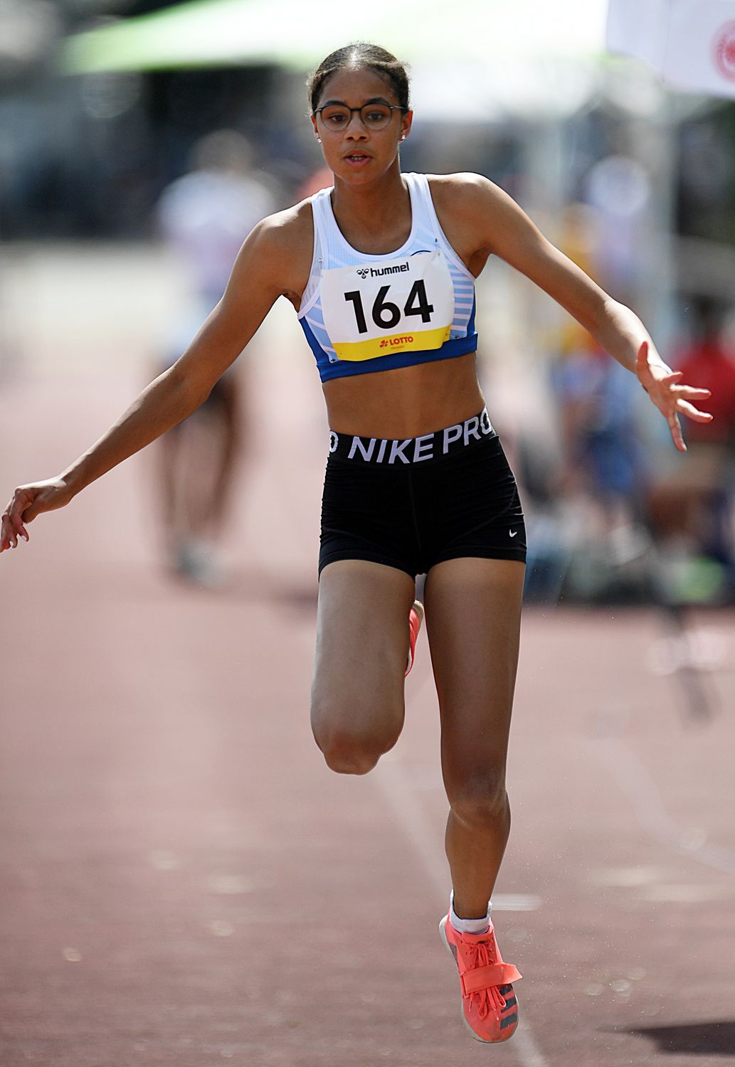 Ein Titel bei einer Nachwuchs-DM ist schon eine tolle Sache. Zwei Gold-Medaillen in Einzel-Disziplinen haben da schon echten Seltenheitswert. Gleich am ersten Tag der deutschen U16-Meisterschaften in Hannover zündete Masha-Sol Gelitz ein Glanzlicht. Die Dreisprung-Spezialistin in den Farben von GSV Eintracht Baunatal legte gleich im ersten Versuch 12,25 Meter vor. Die Konkurrenz war anscheinend so geschockt, dass keiner weiteren Athletin im Feld ein Satz jenseits der zwölf Meter gelang. Somit ging der Titel an die große Favoritin aus Nordhessen, die am Anfang der Saison bei einem Meeting in Wiesbaden mit 12,68 Metern bereits für eine deutsche Bestleitung gesorgt hatte. Dass Masha-Sol auch richtig gut im Weitsprung ist, zeigte sie am zweiten Tag der Titelkämpfe. Es war aber ein extrem spannend, denn bis zu ihrem letzten Versuch standen „nur“ 5,44 Meter auf der Habenseite. Im letzten Durchgang flog Gelitz dann auf glatte sechs Meter und holte sich mit dieser neuen Bestmarke den zweiten DM-Titel!